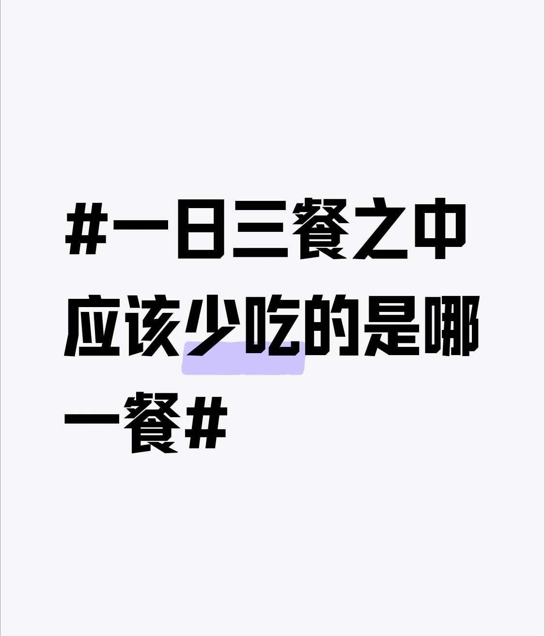 一日三餐里,非要选一顿少吃,那就是晚餐。2022年有研究涉及2.4万人,结果显示和规律吃三餐的人比,不吃早餐全因死亡风险增加11%,心血管病死亡风险增加40%;不吃午餐全因死亡风险增加12%,心血管病死亡风险增加15%;不吃晚餐全因死亡风险增加16%,心血管病死亡风险增加19%。虽然不吃晚餐死亡风险数据高,但从对比看,它在三餐中的“影响”稍小。因为夜间人体休息,晚餐吃多会加重肠胃负担,影响睡眠。不过,也不能过度节食,每餐都得保证营养均衡。
