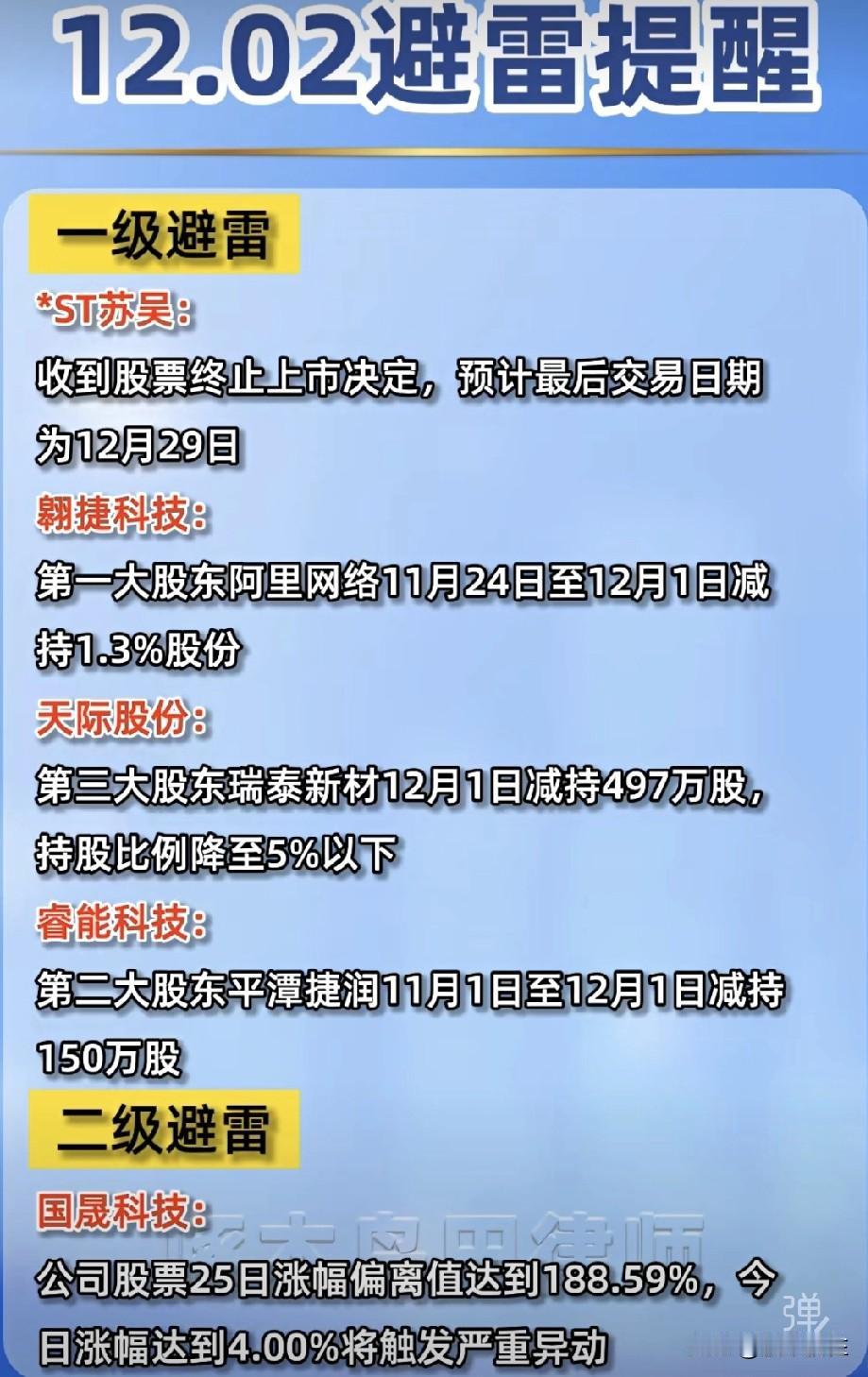 妖股横行! 纯粹是情绪和筹码的游戏, 跟基本面一毛钱关系都没有! 12月2日晚间,又有多只大牛股因股价短期涨幅过大而提示交易风险,提醒短期涨幅过大、换手率激增,存在情绪过热与快速回落风险。 12月A股解禁市值环比大增,中信建投一家解禁超700亿元,叠加177家公司披露减持计划,存量股份供给压力显著 。 能看🉐方向就是近期消息催化比较持续的方向商业航天和AI手机等新故事支撑🉐消费电子。 美股三大指数集体收涨 英特尔涨超8%,映射A股今天看反弹!