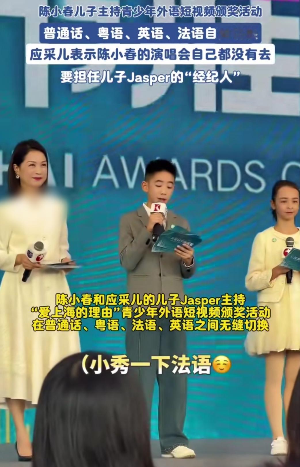 谁说明星子女的优秀都是包装出来的?陈小春儿子Jasper的多语言能力,看完真让人没法不感慨,这差距里藏着太多普通家庭的无奈。 小小年纪能随意切换多种语言,还能站上舞台做多语言主持、唱英文说唱,甚至拿下奖项当国际传播青少年推广大使。这份从容和才华,背后是父母实打实的陪伴和优质资源的支撑。 可反观身边太多普通家庭,父母忙着挣钱养家,别说多语言培养,就连陪孩子读本书的时间都少得可怜。不是不想给孩子最好的,而是现实里的柴米油盐,早把培养的心思磨没了。 不是羡慕明星娃的光环,只是遗憾很多孩子的天赋,没能遇到合适的土壤发芽。愿每个努力生长的孩子,都能被生活温柔以待。