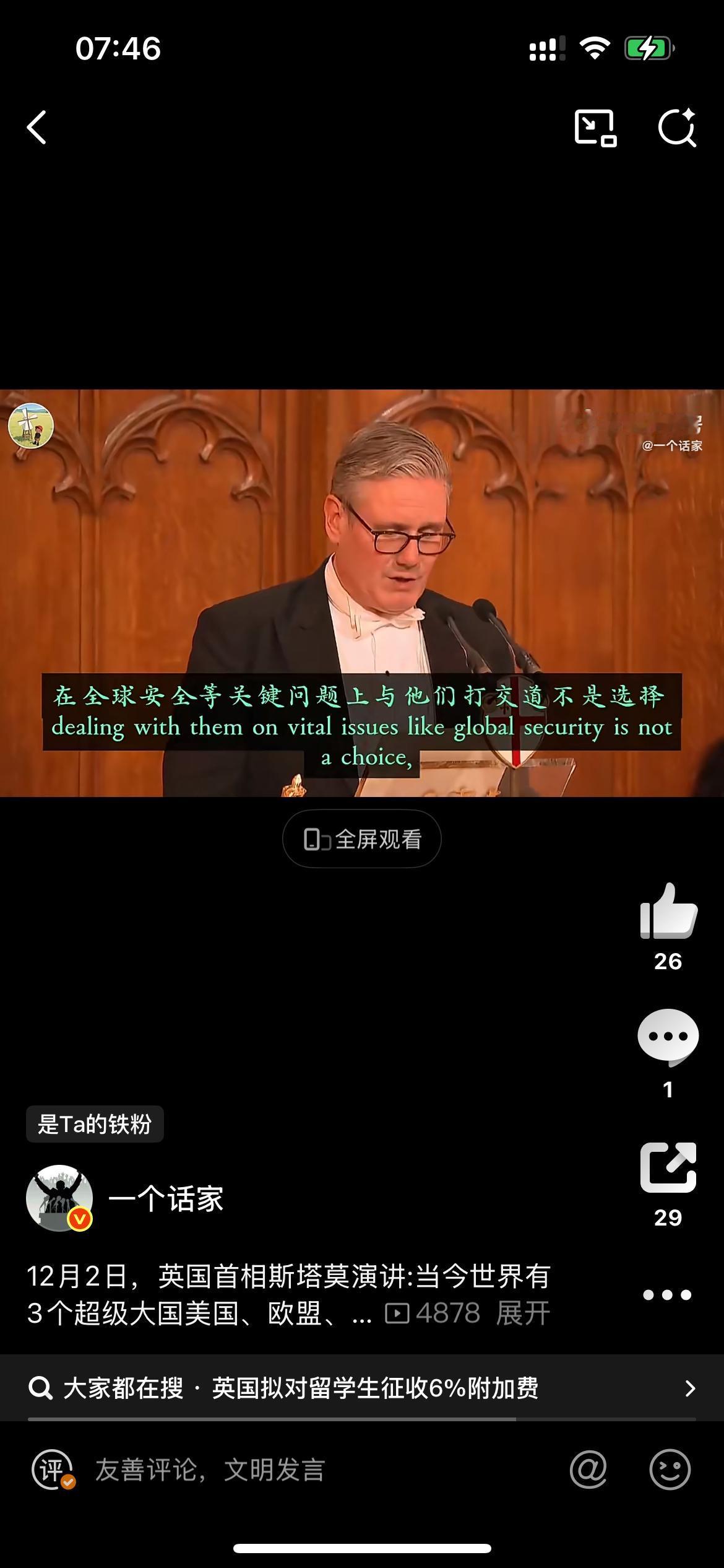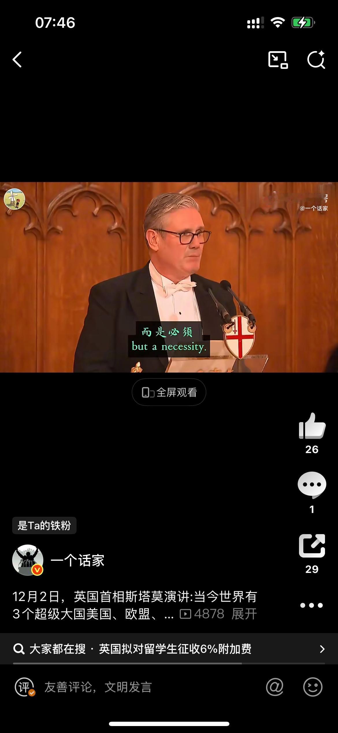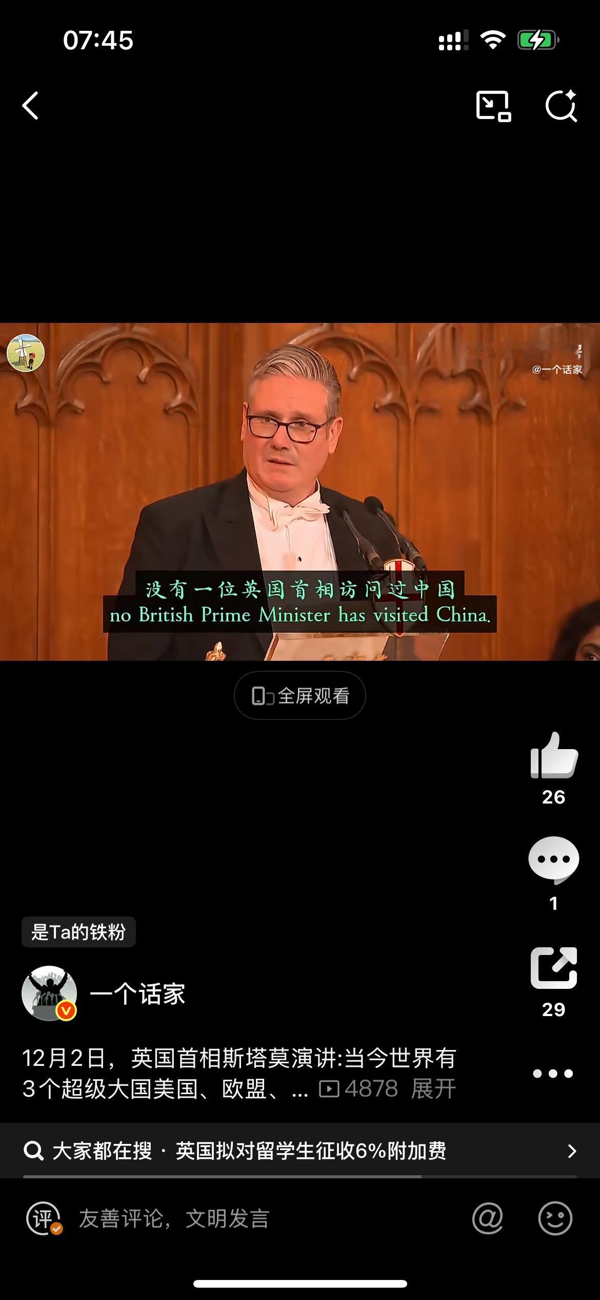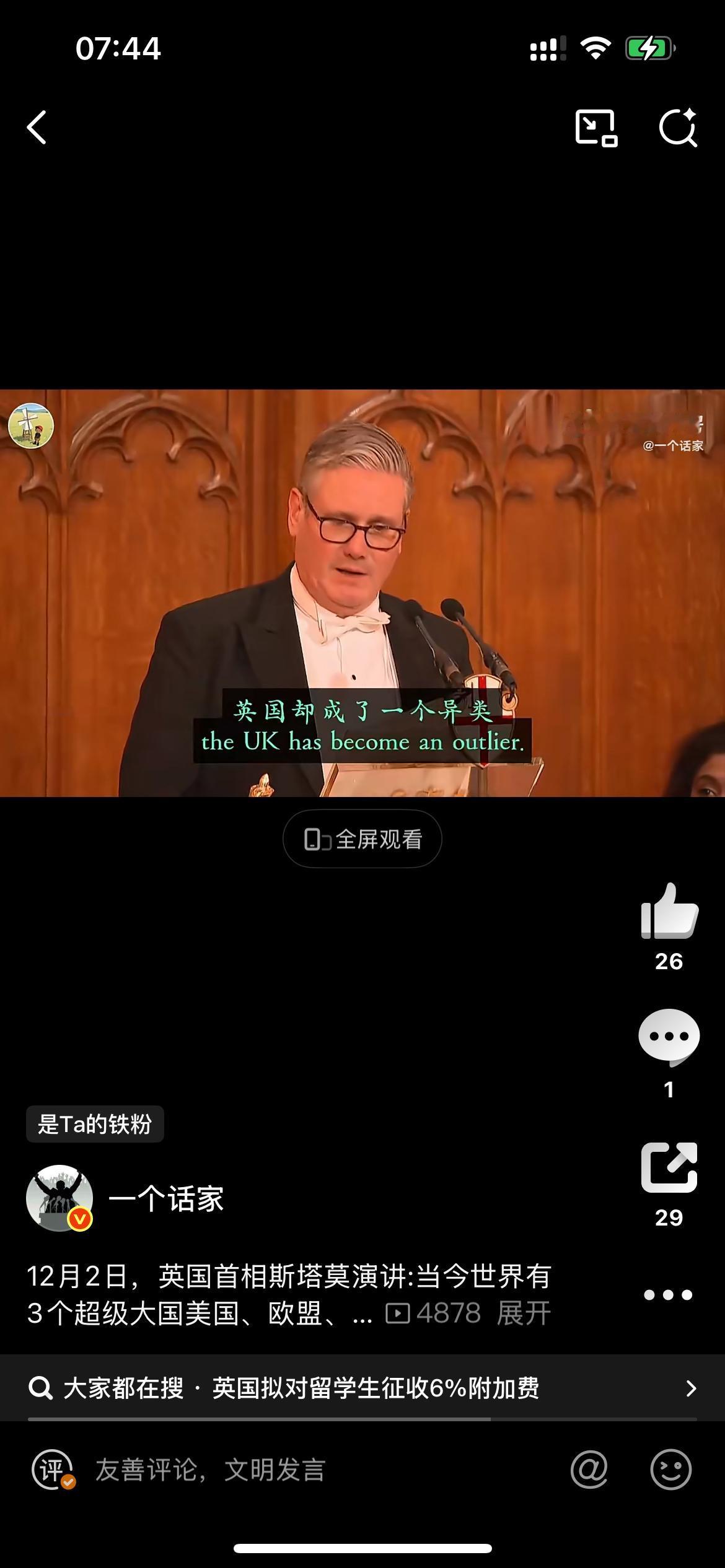 英国首相宣称,中国已经成为超级大国! 12月2日,英国首相斯塔莫在演讲中表示:当今世界存在3个超级大国,即美国、欧盟和中国,它们将决定本世纪的走向。要想把握未来,就必须与其中之一的中国开展贸易往来。如今美德法都与中国交往密切,唯有英国显得格格不入。 斯塔莫这番话意味着,英国政府开始正视现实。现在美德法和中国交往得热乎,就英国有点“落单”。其实这也说明英国政府开始正视现实了,欲寻求与中国扩大合作。中国这些年发展那叫一个迅猛,无论在贸易、科技等领域都成果斐然。 2024年世界GDP排名20强,美国、中国、德国总量排名前三,英国排名老六,与中国有显著差距。尤其在科技发展上,中国更是异军突起。 可见,未来,若英国能够真正摒弃偏见,与中国在贸易、投资、环保、科技等诸多领域开展全面合作,那么英国不仅自身能获取丰厚的经济收益,也将为世界经济的稳定与发展贡献积极力量。 常言道,大事不决看英国,不得不说英国的洞察力确实敏锐。