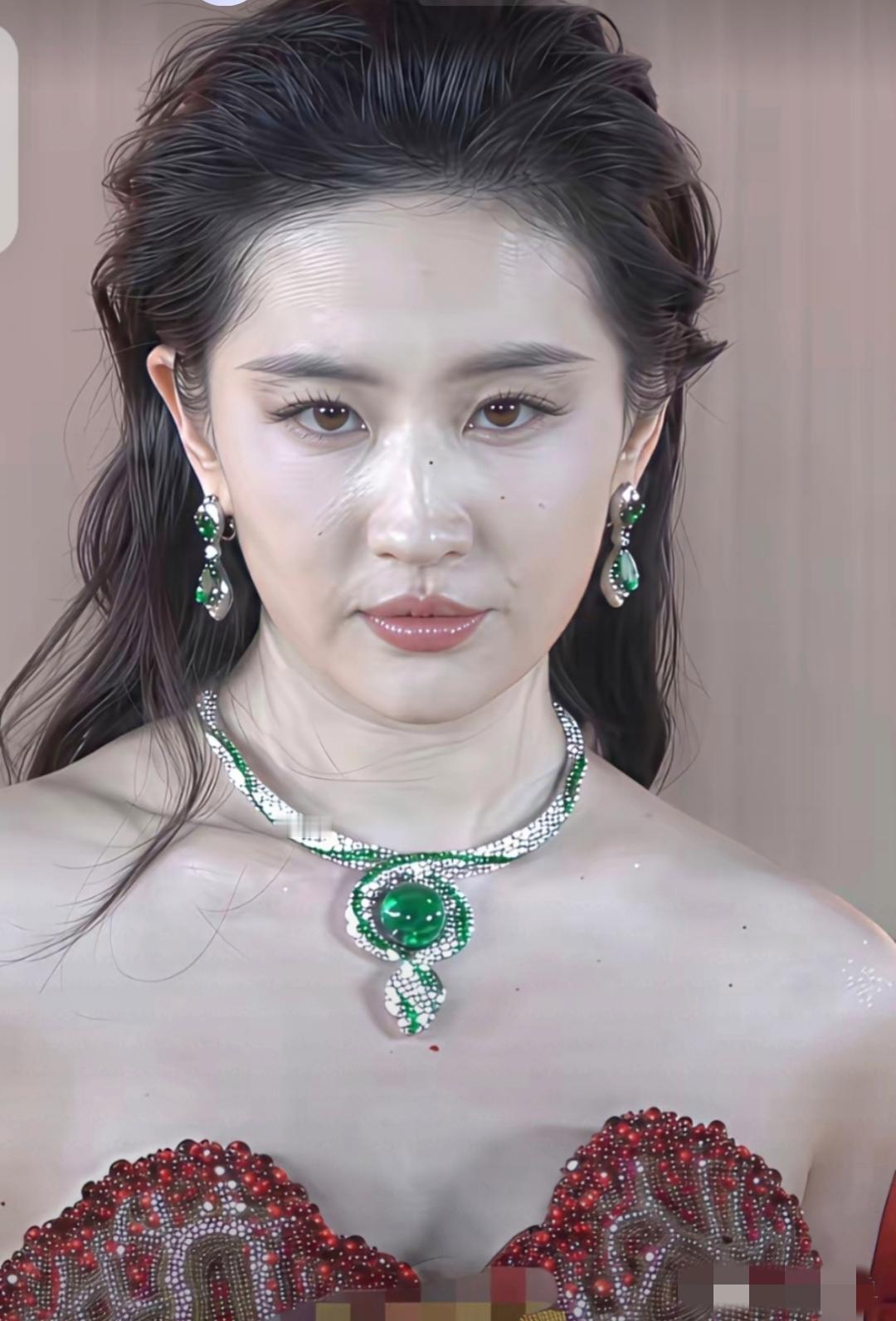 镜头中的刘亦菲身宽体胖,珠围翠绕,眉若墨画,睫毛长翘,颈纹堆叠,眼袋明显,面孔皱褶清晰,目光略微凶狠,女神姐姐也在岁月的打磨下花容失色不少呀,你看呢?