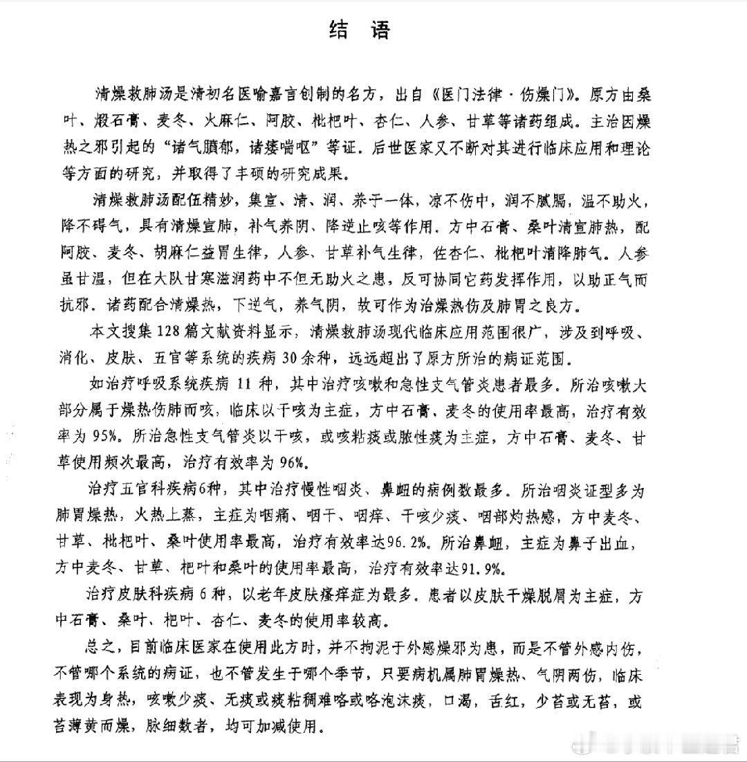 今天上午我继续深入研究喻嘉言先生的清燥救肺汤,查阅文献,找到一篇硕士论文,是赵绍