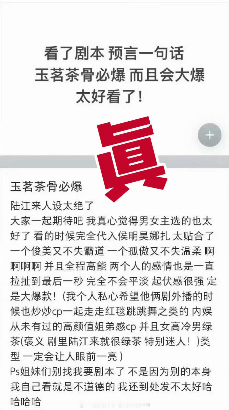 侯明昊娜扎《玉茗茶骨》预约量破100w海报,附赠repo于正认证是真的!!