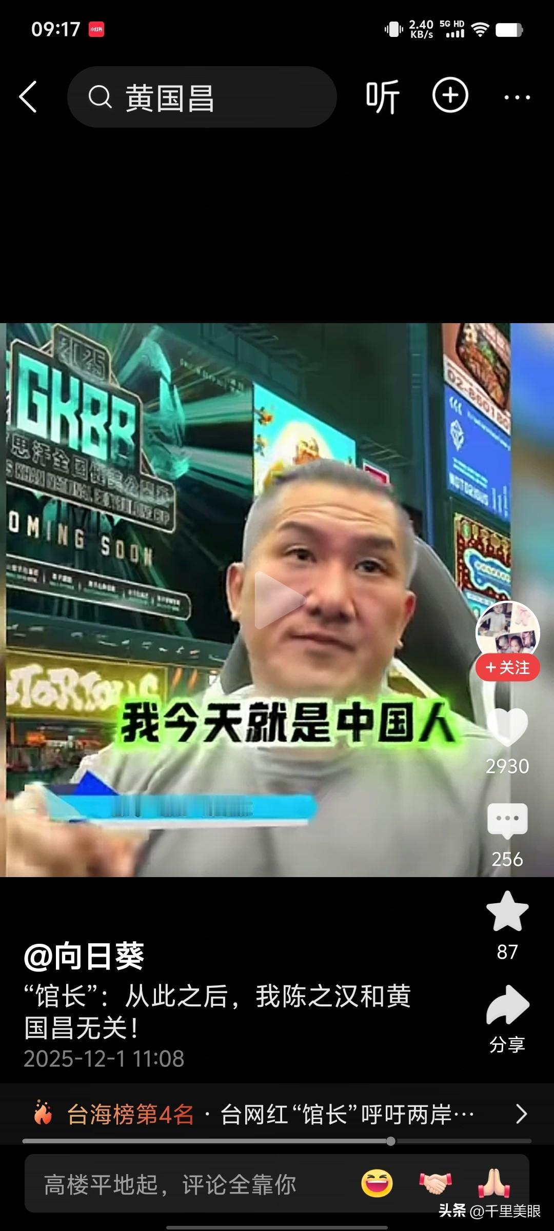 自从黄国昌这位“好兄弟”选了最敏感时间节点去日本窜访,馆长肺都气炸了,他在直播间愤怒说道:“从此以后,我陈之汉与黄国昌无关”。 兄弟割袍断义,他走他的独木桥,我走我的阳关道;他去谋取他的政治利益,我做我的生意;他做他要做的人,我要做一个堂堂正正的中国人。 正如台湾政论评论员邱世卿说的那样,对台湾民意代表,政治人物已完全失去信心,只期待台湾一般民众能够发挥作用。馆长就是他所期待的心中民众。 但愿台湾有千千万万个馆长能够站起来。