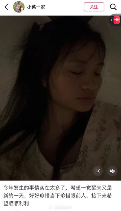 【网红小英发文】小英说今年发生的事情实在太多了11月15日,百万网红小英丈夫“上拉如”因肇事逃逸被刑拘。该事件被通报后,小英账号停止更新。12月2日晚,小英账号发文,称“今年发生的事情实在太多了,希望一觉醒来又是新的一天,好好珍惜当下珍惜眼前人,接下来希望顺顺利利”。