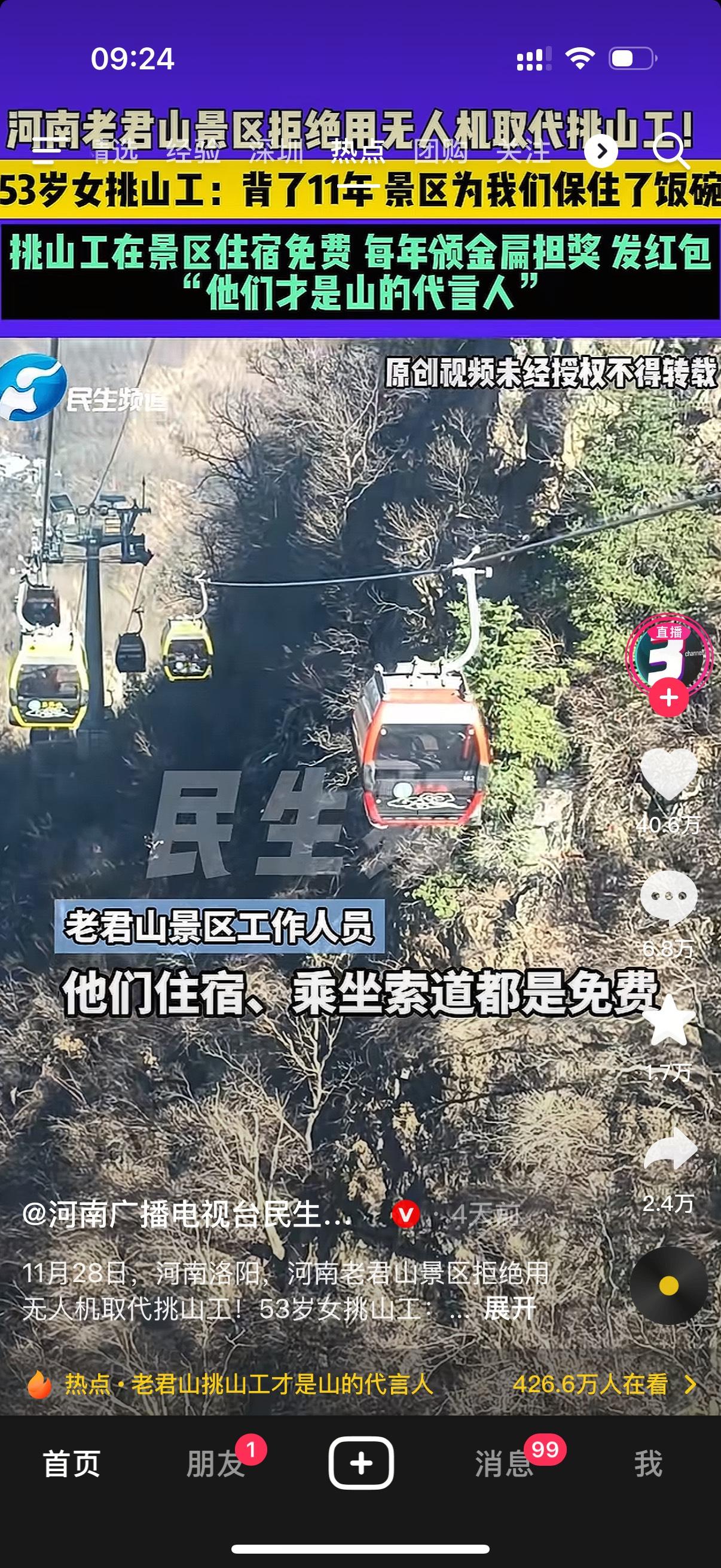 河南老君山景区本着人文关怀,拒绝用无人机代替挑山工。53岁女挑山工表示自己一背就是11年,景区保住了自己的饭碗。这些挑山工每次都得背36箱泡面,走十步就要停下来歇一歇。他们住宿,乘坐索道都是免费。他们还把自己的亲人介绍过来干这份工作,虽然苦点累点,但挣得多,一个月至少8000起步。
