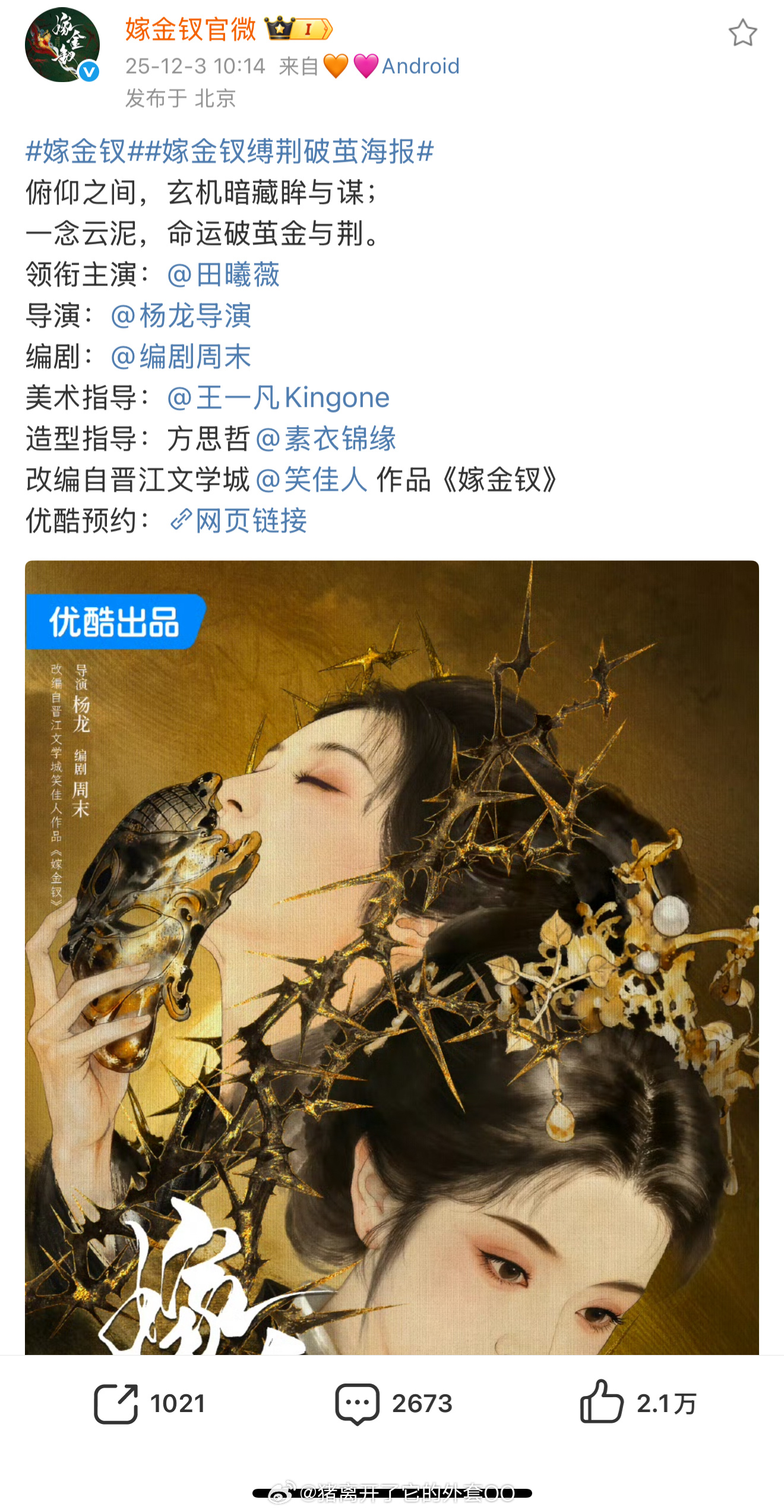 田曦薇《嫁金钗》官宣大女主单人海报!!