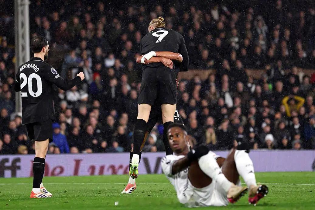 哈兰德造3球破英超神迹,福登连场双响,曼城5-4富勒姆交手19连胜英超哈兰德 上月国际比赛日结束后,受到FIFA病毒影响的曼城,连续输给了纽卡斯尔联和勒沃库森遭遇到了两连败,好在上周末的联赛,蓝月军团止住了颓势,在主场有惊无险拿下利兹联,超越蓝军切尔西,重返英超积分榜第二。本周曼城依旧面临着一周双赛的考验,周中第十四轮联赛,奔赴客场挑战富勒姆,本场比赛曼城火力全开,哈兰德1射2传独造三球,福登也上演了梅开二度,再加上赖因德斯和多库的进球,客场5-4击败富勒姆,完成了对后者的19连斩。富勒姆本赛季的表现平平,在上一轮客场击败传统六大豪门之一的热刺后,也只以5胜2平6负的战绩,排名英超积分榜第15位,而且他们是曼城在国内赛场最喜欢的对手,在两支球队最近的18次直接对话中,曼城全部获得了胜利,这也是赛前球迷看好瓜迪奥拉率队客场凯旋的原因。为了能够咬住领头羊阿森纳,曼城此役在克拉文农场球场也是尽遣主力出战,在433的阵型中,让多纳鲁马镇守龙门,努内斯、鲁本迪亚斯、格瓦迪奥尔和奥赖利构筑后防,B席、冈萨雷斯和赖因德斯坐镇中场,福登、哈兰德和多库组成进攻三叉戟。比赛正式开打后,曼城就大举压上围攻富勒姆,第6分钟哈兰德就差点帮助球队取得梦幻开局,可惜低射击中立柱被弹出,不过第17分钟,挪威魔人还是接到多库左路传中后,禁区内扫射破门,帮助曼城取得了1-0的领先,凭借此球哈兰德只用了111场英超比赛就打进了100粒进球,创造了英超历史最快百球纪录。第37分钟哈兰德中场得球后,送出一脚直塞,助攻赖因德斯单刀挑射破门,曼城也把领先的优势扩大到了2球,第45分钟蓝月军团角球开出后,第一点被解围,禁区外的福登直接轰出世界波,把比分的优势扩大到了3-0,半场结束前,富勒姆由史密斯罗扳回一城,带着1-3的劣势,回到了更衣室。下半场刚刚开打不久,曼城就进一步扩大了领先的优势,多库反击中左路带球杀到前场后,送出一脚斜塞,哈兰德脚后跟把球停给了右路前插的福登,后者小角度破门得分,将比分改写为了4-1,连续两场上演梅开二度。第54分钟杀疯了的曼城,再次攻破富勒姆的球门,表现活跃的多库,前场抢断后带球内切,随后起脚兜射远角建功,比分被进一步拉大到了5-1,虽然富勒姆没有放弃,靠着伊沃比的进球,丘库埃泽的梅开二度连入3球,帮助富勒姆将比分追至4-5,但无力改变主场输球的结局。随着本场比赛的结束,曼城在多赛一场的情况下,将和领头羊阿森纳的积分差距缩小到了只有2分,本轮枪手将在主场迎战布伦特福德,小蜜蜂能否阻击阿森纳,送给蓝月军团一份大礼包,让我们拭目以待。