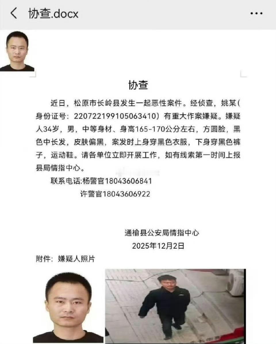 就是这人,吉林松原长岭姚某涉嫌恶性案件,目前在逃,34岁,男性。到底是犯的啥事,