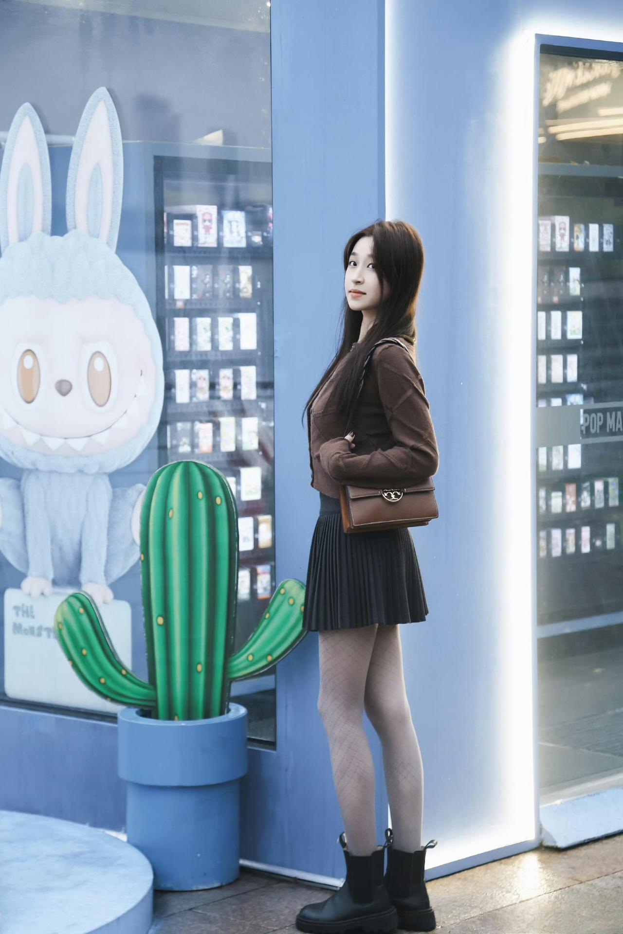 这套穿搭是甜酷学院风与轻熟复古感的融合,松弛又具少女气质。内搭灰色吊带+棕色针织开衫,温柔松弛的氛围拉满;搭配黑色百褶短裙,自带学院风的青春感,同时中和了针织衫的温柔,注入了甜酷气质。 搭配黑色厚底短靴酷飒利落,提升了整体的街头感;棕色小包简约实用,与开衫色调呼应,强化了搭配的和谐度。能充分展现穿着者甜酷学院又不失轻熟复古的独特魅力。灰棕色系穿搭 温柔感风穿搭 我的宝藏兴趣