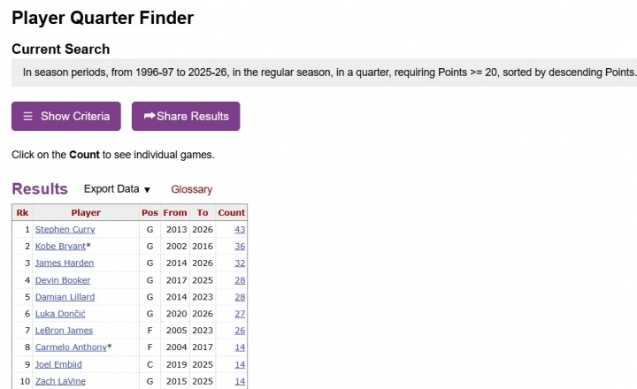 最新单节20+历史前10如下:1、库里43次2、科比 36次3、哈登 32次4、布克 28次4、利拉德 28次4、东契奇28次7、詹姆斯26次8、安东尼 14次9、恩比德 14次10、拉文 14次