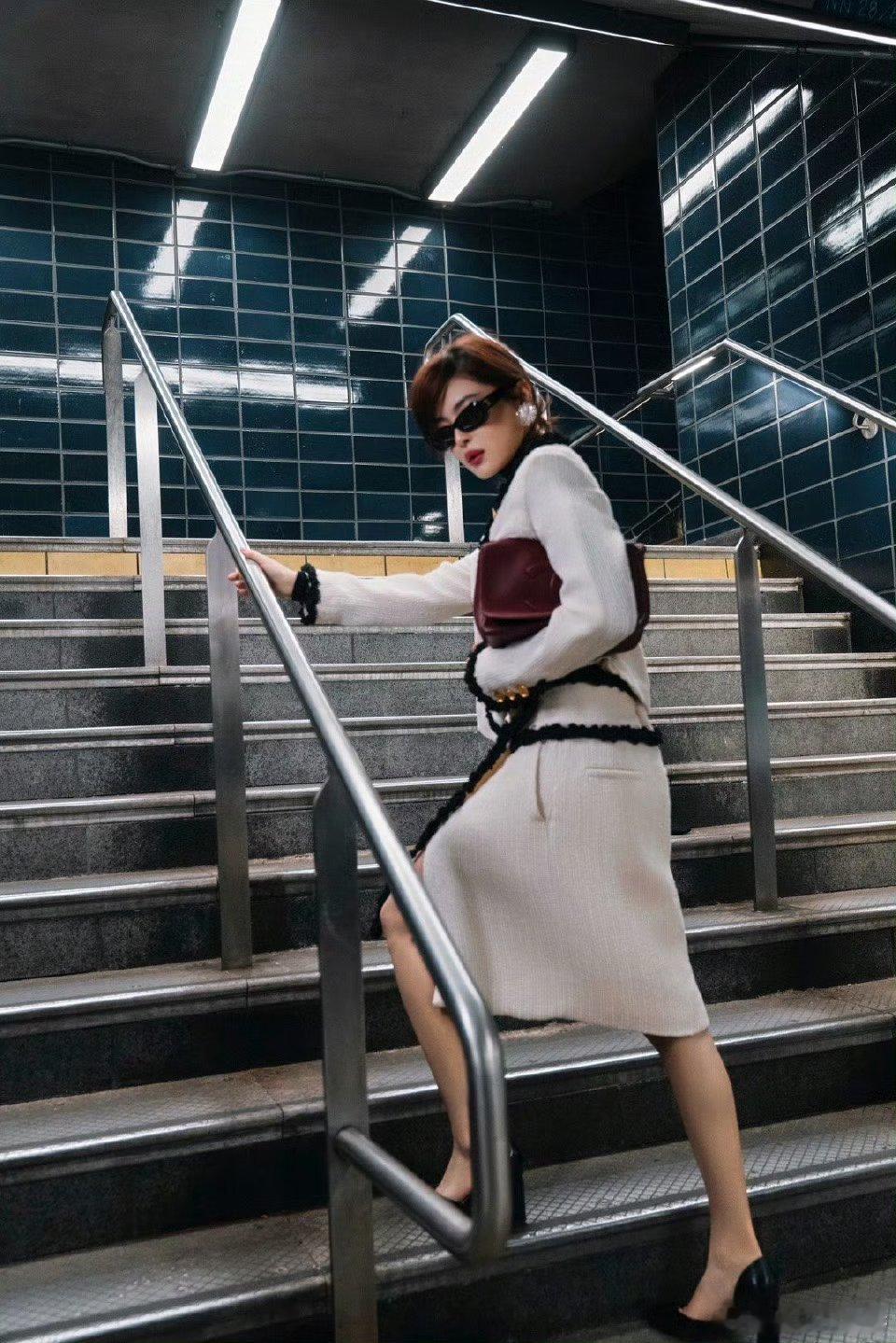 辛芷蕾白色套装看秀 谁被辛芷蕾的看秀造型美到了?白色套装利落大气,地铁场景呼应手工坊灵感,作为内娱女星首位演绎者,她将优雅与气场拿捏得恰到好处,巨星范儿藏不住!