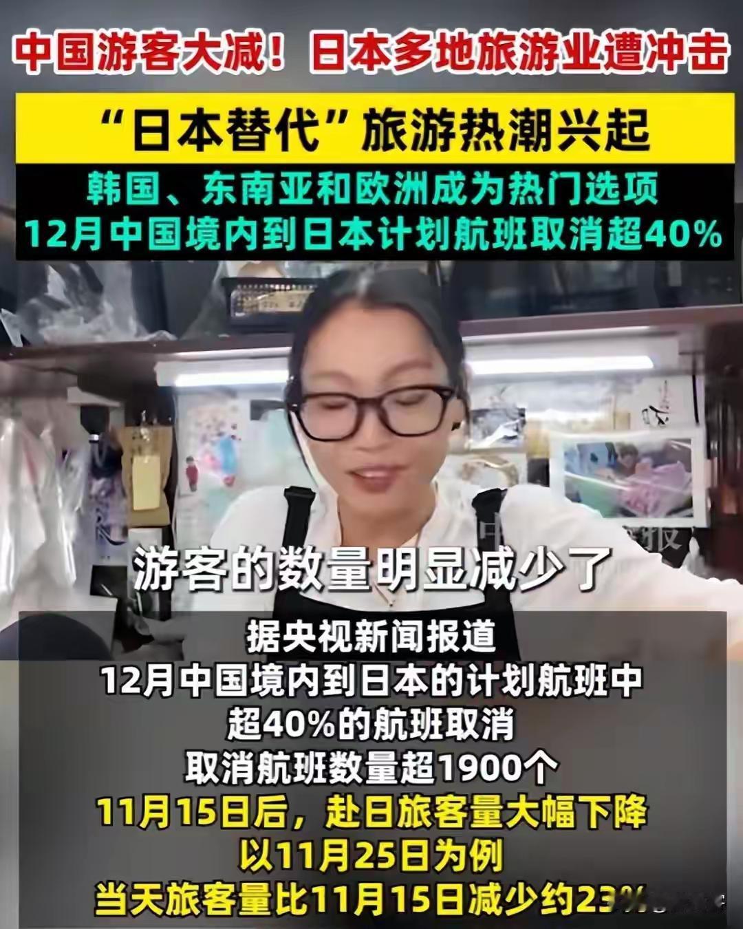 1900架航班取消还不够!日本急眼明抢钓鱼岛,中方反制直戳痛处 12月中国飞日本航班取消超40%,1900多架次泡汤,关西机场坦言往返中国航班比预期少三成,赴日游客量11月下旬暴跌近四分之一,京都、大阪热门商圈冷清,药妆店、免税店营业额大降三成。 民航旅游遇冷的背后,是日本首相高市早苗涉台错误言论触碰中方红线,中方发布赴日旅游风险提示后,日本经济率先承压——11月30日日经225指数大跌1000点,市场震荡不止。 经济低迷、支持率告急,高市早苗竟打钓鱼岛主意转移矛盾。12月1日,日本高调展出所谓"确权铁证",实则是1950年中方草稿、1889年清朝探查报告、1895年割台公文,漏洞百出:草稿不算官方立场,割台公文压根没提钓鱼岛,纯属硬凑。史料早已明确钓鱼岛属中国,日本学者也曾承认19世纪日本地图标注其为中国领土,连日本共产党都痛批此举"极其危险"。 日本挑衅面前,中方反制迅速硬核。11月中旬日本小动作不断后,中国海警即刻加密钓鱼岛巡航,常态化进入领海维权,依法驱离非法闯入的日本渔船;同时致函联合国秘书长,驳斥日方狡辩,点出其违反战后秩序、妄图突破和平宪法的野心,警示国际社会警惕日本扩军。 这下日本彻底内外交困:国内在野党追责高市早苗损害国家利益,企业界扛不住损失,政经团体密集求访华降温;美国也不愿陪跑,特朗普致电劝其别挑衅中国,日本官员直言通话透着"担忧"。 历史早已证明,挑衅中国、转移矛盾只会自食恶果。中方握有主动权,日本若执迷不悟,反制只会更严;若回归理性对话,民航旅游、双边关系才有转机,何去何从,日本该拎清了!琉球问题 琉球之争 琉球局势 钓鱼岛领海 中日航班量下降 长岛钓鱼岛 钓鱼岛公园