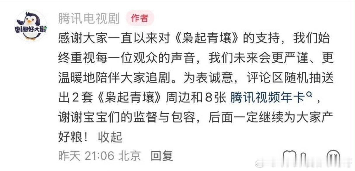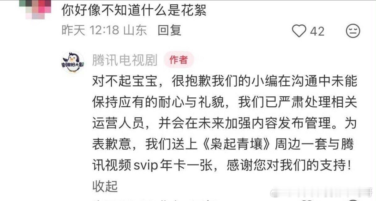 腾讯电视剧向枭起青壤观众道歉:已严肃处理相关运营人员