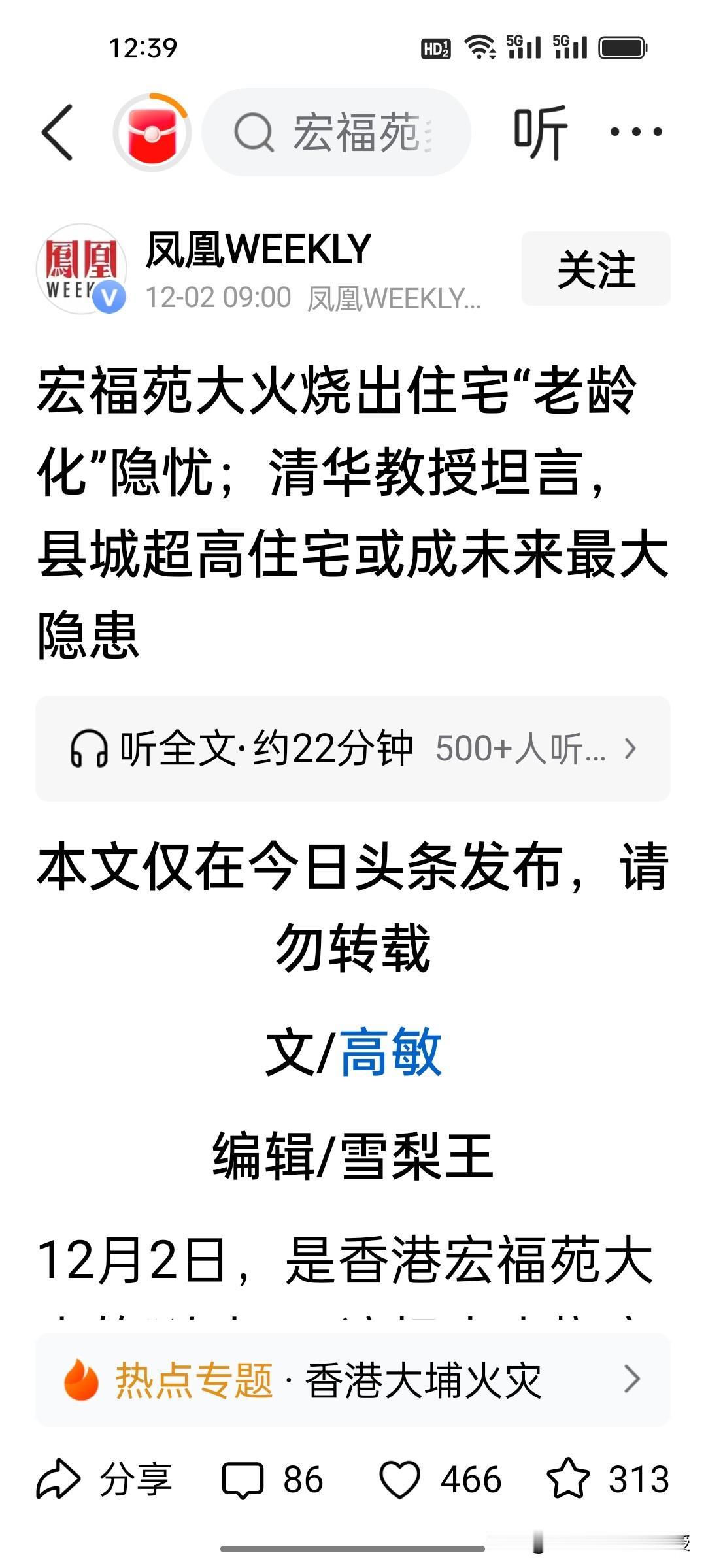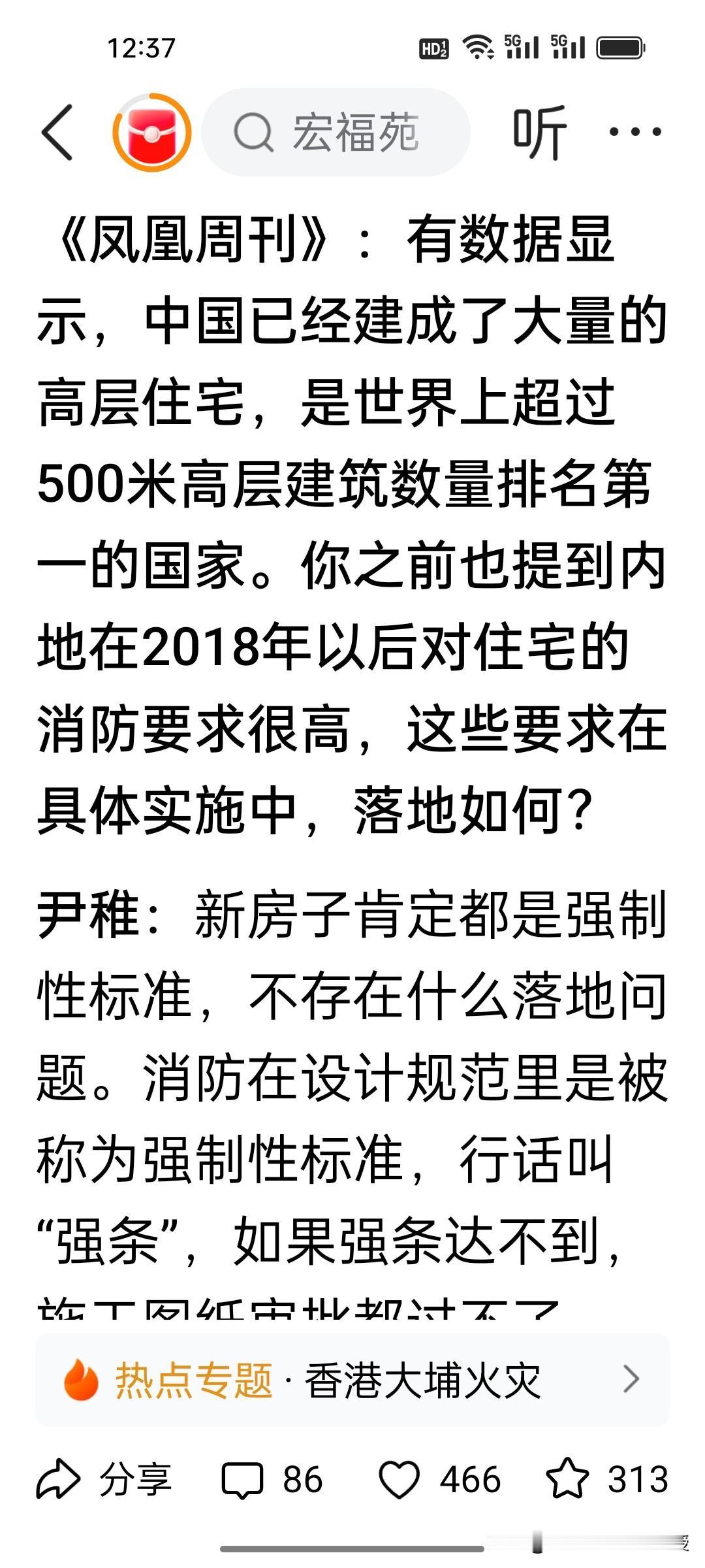 清华大学建筑学院教授尹稚对县城超高住宅表示担忧! 刚刚看到《凤凰周刊》昨天采访清华大学建筑学院教授尹稚关于此次香港宏福苑火灾的一些看法,这位教授直接表达了对如今县城3088座高度超过150米的超高住宅的担忧,这其中有35%的超高楼已经有30年房龄。他认为,目前商品房建设已经进入尾声,面对超高建筑的老龄化危机,我们必须要提前做好准备。 尹教授的担忧正切中要害,超高住宅老化后消防、运维隐患突出,这些问题不得不重视。我认为全国范围内应该要对高龄的超高住宅进行一次全面的消防安全大检查。 如今的刚需购房者,首选中低楼层的比较新的住宅,优先挑户型方正、采光通风佳、消防设施完备的房型,安全为第一要素,规避超高楼的长期风险。
