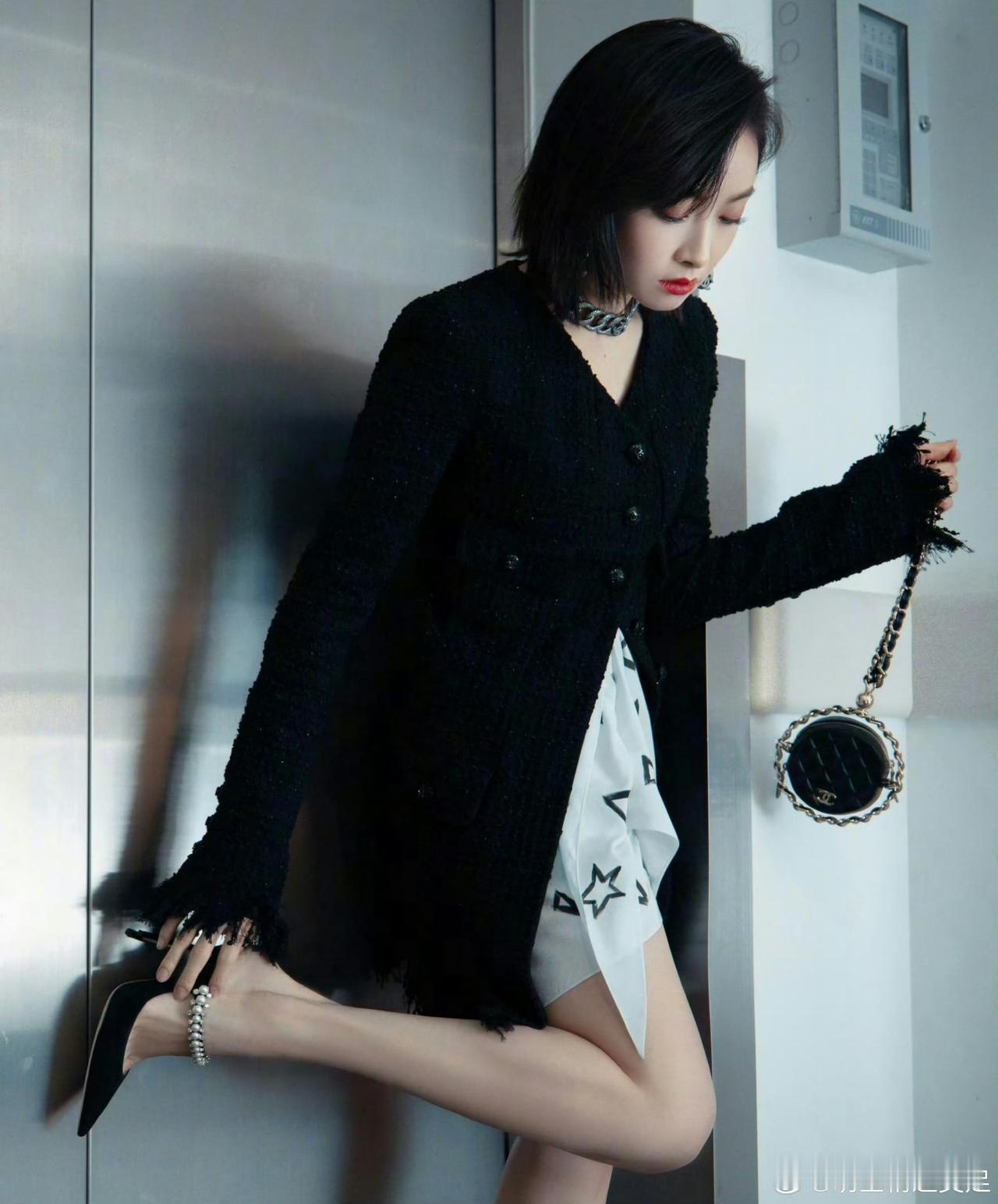 吴艳妮在成都穿着短裤大腿看起来很粗壮,表情自信又张扬