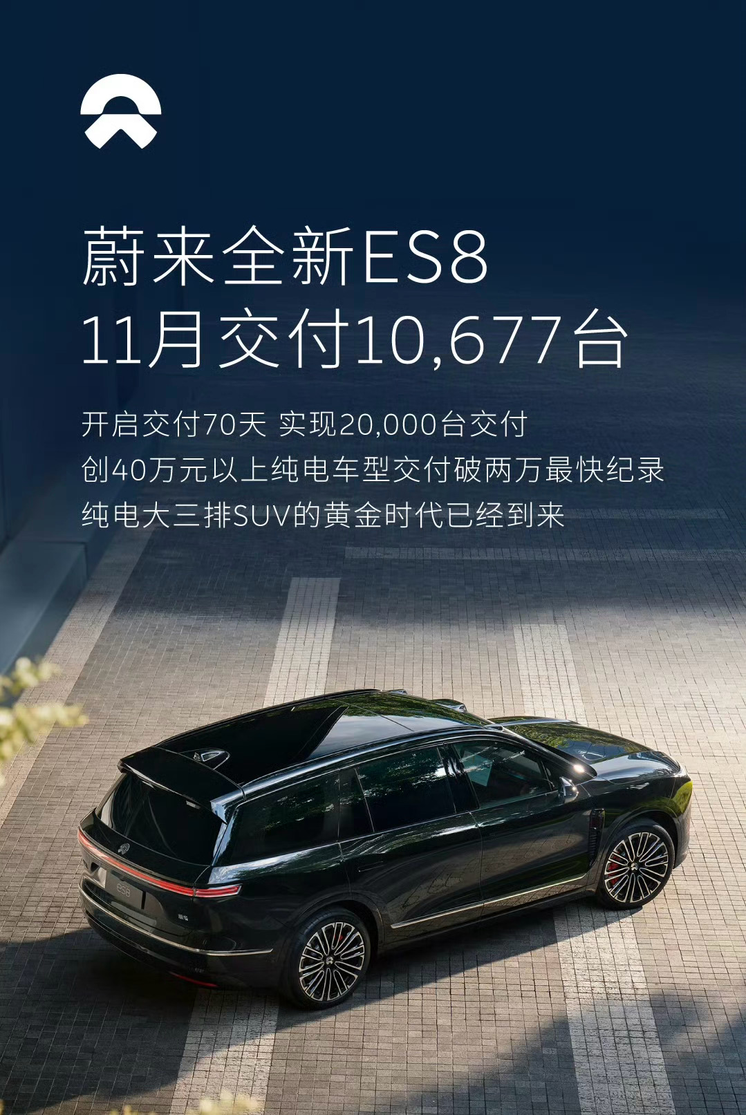 11月蔚来全新ES8交付10677台,在40万以上的纯电车里,这成绩相当厉害。李斌之前说过,12月要干到1.5万台,如果能达成,品牌势头会更猛。