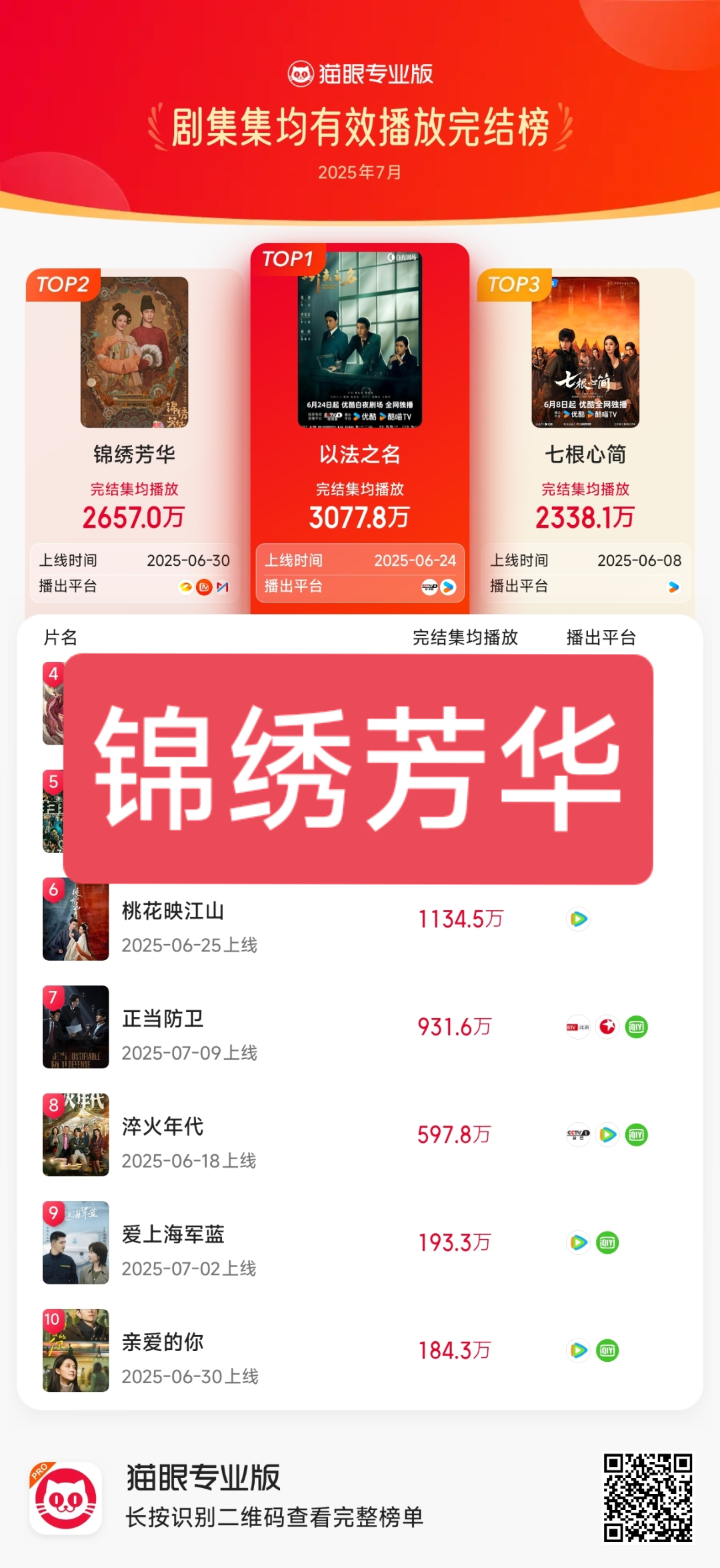 国色芳华云合一组数据——❶《国色芳华》同档期集均播放排第三名。❷《锦绣芳华》同档期集均播放排第二名。在宣传上,为什么感觉全世界就是杨紫的戏最火呢?