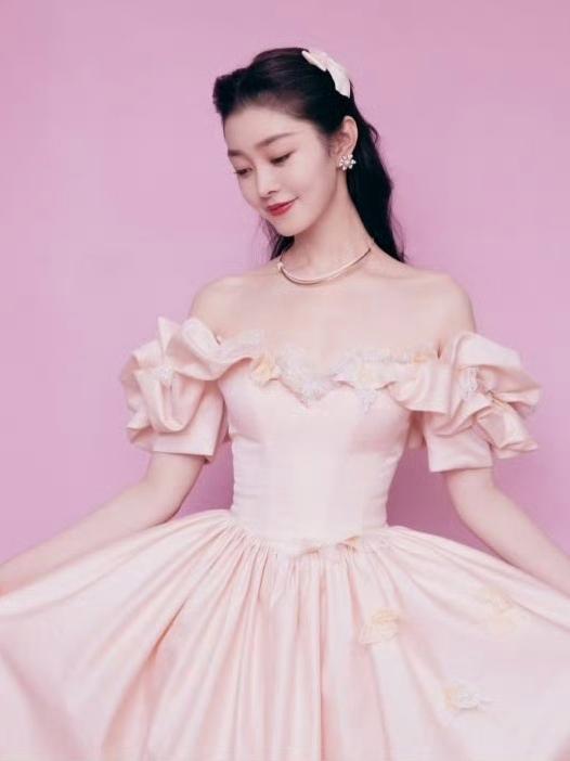 宋轶把“温柔大小姐”焊在身上了! 淡粉色缎面裙配泡泡袖,蕾丝花边+立体小花点缀,甜而不腻的优雅感扑面而来✨ 发间的白色缎带、闪钻耳饰和项链一搭,在粉调背景里又仙又娇,这状态真的像从童话里走出来的公主