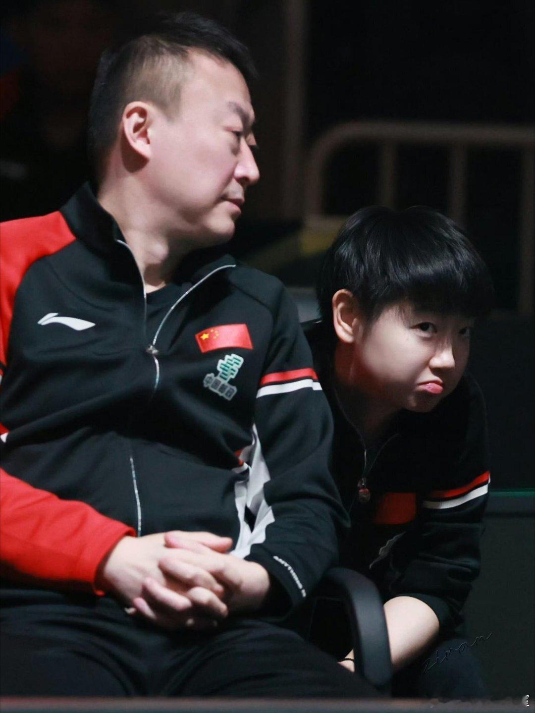 孙颖莎躲在马琳身后撇嘴嘘…偷偷跟你说个秘密:你好可爱,哈哈莎莎也太萌了吧!