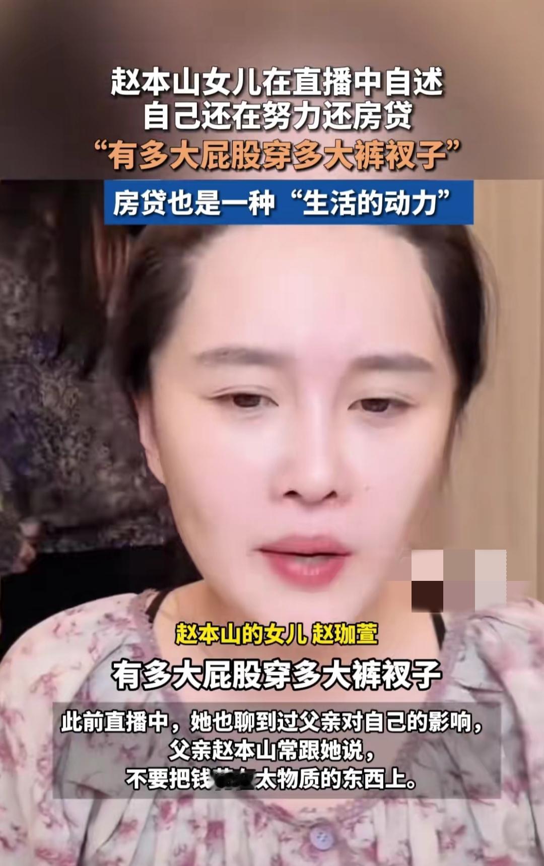 赵本山女儿直播说自己还在努力还房贷,这事儿一出来,不少人都愣了,星二代也会被房贷压着?这到底是真的不容易,还是直播间的另一种流量密码? 按理说,背靠赵本山这样的家庭,怎么会缺还房贷的钱?普通人一辈子扛房贷是常态,可放到星二代身上,总觉得有点违和。难道现在连明星家庭的孩子,都要靠直播卖惨博关注了? 成年人的压力大家都懂,但别把“还房贷”当成流量道具行不行?真辛苦值得体谅,可要是故意博眼球,反而让人反感。毕竟普通人的房贷焦虑,可不是用来蹭热度的。