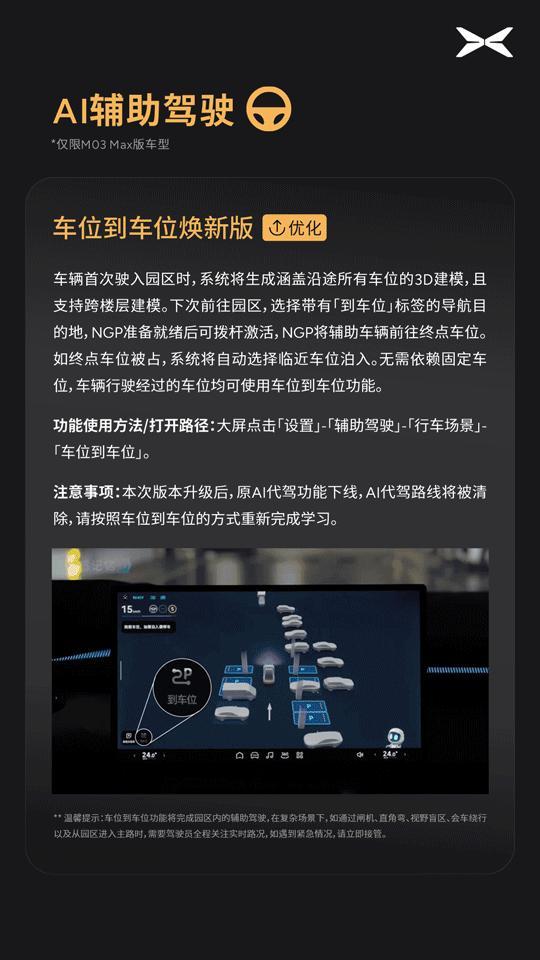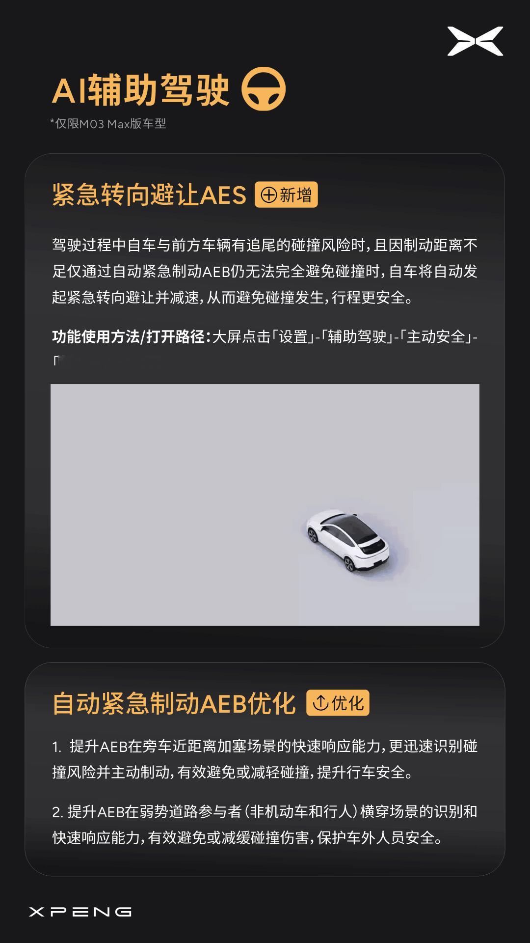 作为P7车主,一直很认可小鹏的实力。刚看到OTA又全系升级,属实被吸引到了!这次升级亮点不少,无麦K歌、VIVO镜像这些座舱功能都很实用,但最让我惊喜的,还是智驾和安全方面的提升,尤其是在小鹏MONA上的升级——车位到车位辅助驾驶加上AES紧急转向避让,15万级的车能有这表现,确实堪比50万旗舰的质感!我最关注的就是这次AES的升级,系统提前预判危险,要是判断单纯刹车不够用,还会自动转向避让,驾驶安全性大大提高。更关键的是,小鹏MONA是同级唯一搭载AES功能的车型,把以前40-50万高端车才有的安全配置下放到15万内,这波科技平权,小鹏做得确实到位!还有车位到车位辅助驾驶,对我这种经常要找车位的人来说太友好了。以前找车位加停车至少要10分钟,现在上车打开NGP就能自动完成。车子会自动生成3D建模,跟着“地图”走就行,就算没有固定车位,也能自动找到空车位停好,大大节省了停车时间,性价比是真的高!要知道这可是全球唯一15万以下具备该能力的车型,实力肉眼可见。座舱升级也很贴心:无麦K歌不用额外带设备,下班顺路接朋友时,路上就能随便唱两句;VIVO镜像连接流畅,手机导航投到车机上很方便。在软件赋能汽车的时代,小鹏这种持续升级的诚意,不管是老车主还是新用户都能感受到,这种“越开越值”的体验,懂的都懂!小鹏MONA迎来第十一次大规模OTA 小鹏MONA新增AES紧急转向避让功能