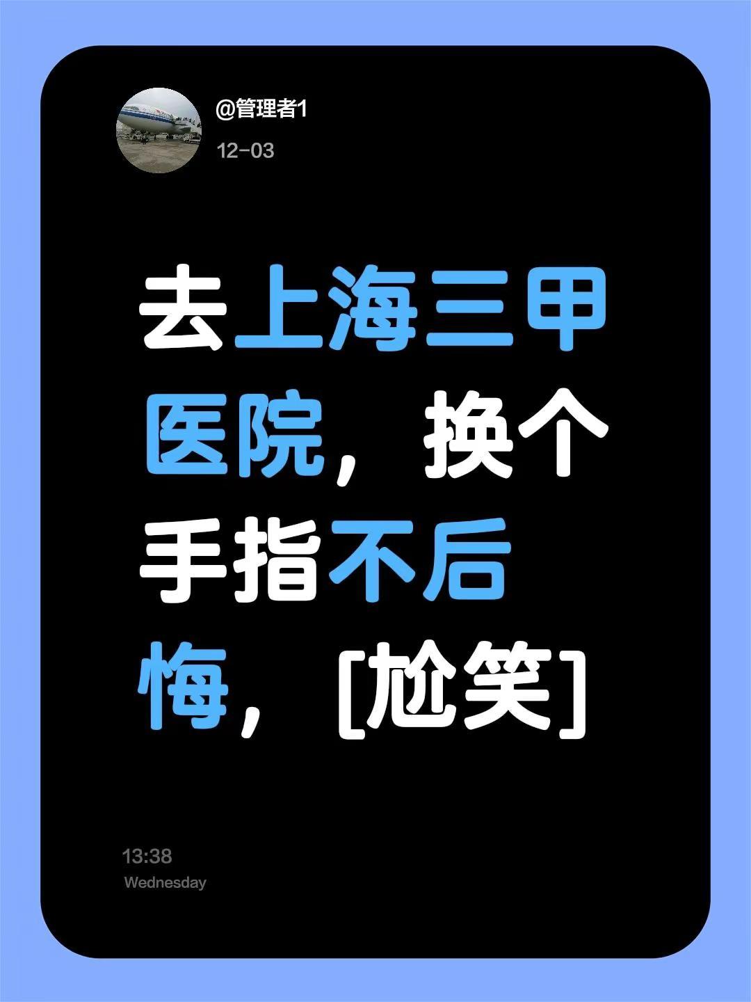 我评论了@琳枫 的作品:去上海三甲医院,换个手指不后悔,[尬笑]