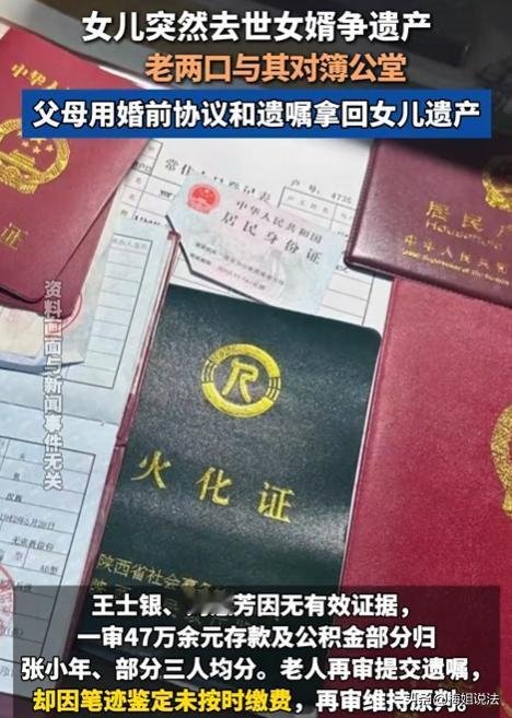 湖北荆门,刘女士去世后留下47万存款和公积金,其丈夫认为这是夫妻共同财产,先分一半归自己,剩下的一半作为遗产由他和岳父母均分。刘女士母亲称女儿生前立遗嘱把财产留给父母养老。女婿起诉到法院,一审老人没提供证据,法院支持了女婿诉求。老人申请再审提交遗嘱,女婿质疑签名真实性又撤回笔迹鉴定申请,再审维持原判。老人向检方求助,提交关键证据,最终通过笔迹鉴定扭转判决结果。 刘女士在2022年9月不幸离世,留下47万存款和公积金。 她丈夫觉得这是夫妻共同财产,要先分一半给自己,剩下的一半和岳父母平分。 可刘女士的母亲说:女儿生前立了遗嘱,要把财产留给父母养老。 2024年6月,八旬老人实在咽不下这口气,向检方求助。 原来,早在2023年11月老人就申请了再审,还拿出了遗嘱,可女婿质疑签名,申请鉴定后又撤回,再审维持原判。 老人不懂法律程序,鉴定没成,只能干着急。 这女婿的做法,实在让人气愤。 老人年纪大了,本就承受着丧女之痛,女婿不仅不体谅,还为了财产把老人告上法庭。 一审时,老人没拿出遗嘱,法院按法定继承判了,女婿得了便宜还卖乖。 再审时,老人拿出了遗嘱,他又搞小动作,撤回鉴定申请,这不是故意刁难老人吗? 1,该案的财产,到底该怎么分呢? 女婿认为这是夫妻共同财产,自己先分一半,剩下的一半和岳父母平分。 老人拿出了遗嘱,说女儿要把财产留给自己养老。 从女婿立场看,他觉得夫妻共同财产就该这么分,他觉得刘女士没提前说财产另有安排,自己按法定继承来没问题。 可他不知道的是,法律上,遗嘱继承,优先于法定继承。 老人拿出了遗嘱,就是最有力的证据,他们的女儿辛苦一辈子,留下的财产就该按女儿的意愿来,给自己养老也属应该。 这也是人之常情,毕竟女儿走了,老人失去了依靠。 2,那么,法律依据是什么呢? 根据《民法典》第一千一百二十三条,继承开始后,按照法定继承办理;有遗嘱的,按照遗嘱继承或者遗赠办理;有遗赠扶养协议的,按照协议办理。 这也就是说,上述法条已经明确了遗嘱继承的优先性。 3,女婿说这是夫妻共同财产,他先分一半合理吗? 《民法典》第一千零六十二条规定,夫妻在婚姻关系存续期间所得的工资、奖金、劳务报酬等财产,为夫妻的共同财产,归夫妻共同所有。 但民法典第1133条也规定,自然人可以立遗嘱将个人财产指定由法定继承人中的一人或者数人继承。 如果刘女士和丈夫婚前或婚内有财产约定,财产归各自所有,那么,刘女士的财产,她就有权通过遗嘱处理。 具体到本案: 女婿隐瞒了可能存在的财产约定情况,想当然地认为能先分一半。 可老人拿出了遗嘱后,经过鉴定遗嘱真实有效,这就说明刘女士生前对财产有了明确安排。女婿的诉求就不合理了。 4,法院判决: 一审时,老人没拿出遗嘱,法院按法定继承判,这没问题。 因为,当时没有遗嘱这个关键证据,只能按法定继承来。 但再审时,老人拿出遗嘱,女婿又搞小动作,法院维持原判就不对了。 好在老人向检方求助,提交关键证据,经鉴定遗嘱真实有效,法院再审改判财产归老人继承,这才维护了逝者的意愿和司法的公正。 对法律知识了解不够,遇到事情就不知道怎么维护自己权益。 就像这老人,不懂法律程序,再审时鉴定没成,吃了大亏。 有些人为了财产,不顾亲情,像这女婿,为了钱把八旬岳父母告上法庭,亲情在金钱面前变得一文不值。 亲情是无价的,不能为了钱伤了和气。 在处理财产问题时,要尊重逝者意愿,按照法律规定来,不能只考虑自己利益。 最终判决:2025年3月,法院再审改判财产归老人继承。 不管是立遗嘱还是处理财产问题,都要合法合规。 立遗嘱要符合法律要求,确保遗嘱真实有效。 处理财产时,要尊重他人权益,不能只想着自己。 只有这样,才能避免不必要的纠纷,大家说,是不是这个理呢?