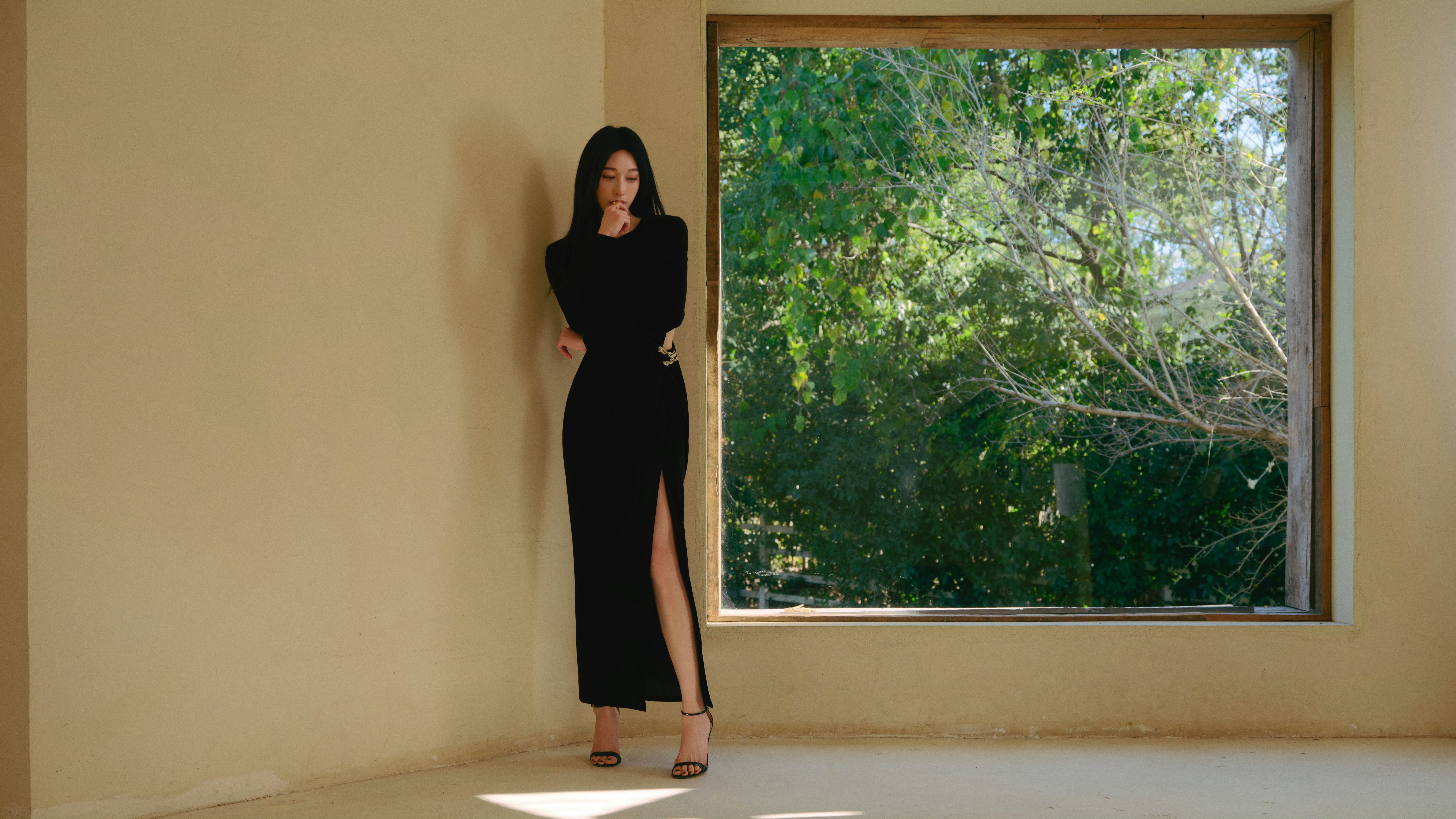 张俪,淡粉色的秋日穿搭色彩。张俪