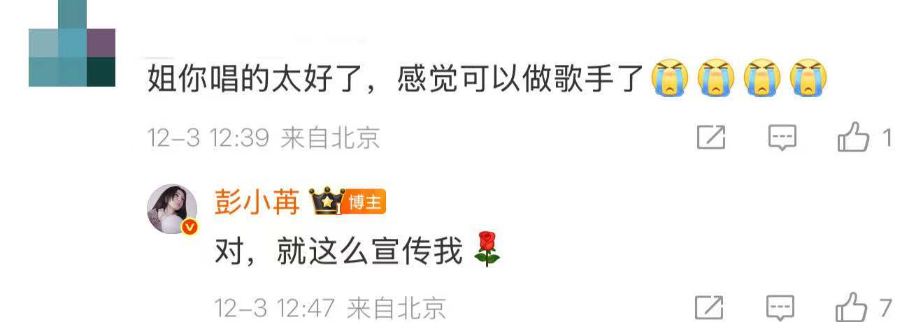彭小苒 对就这么宣传我 彭小苒发布生日单曲《把故事还给昨天》,轻轻柔柔的声音唱情歌,娓娓道来的感觉让人脑补出了一整部小说!有粉丝也在评论区夸彭小苒“感觉可以做歌手了”,彭小苒听到粉丝的夸夸也马上臭屁回复“ 对就这么宣传我”这个彭小苒简直不要太可爱了吧!剧综大咖开放麦