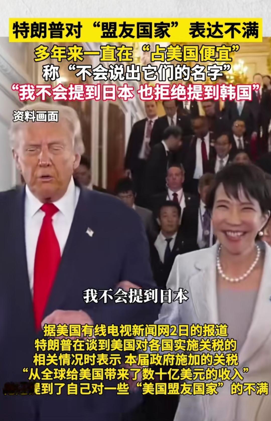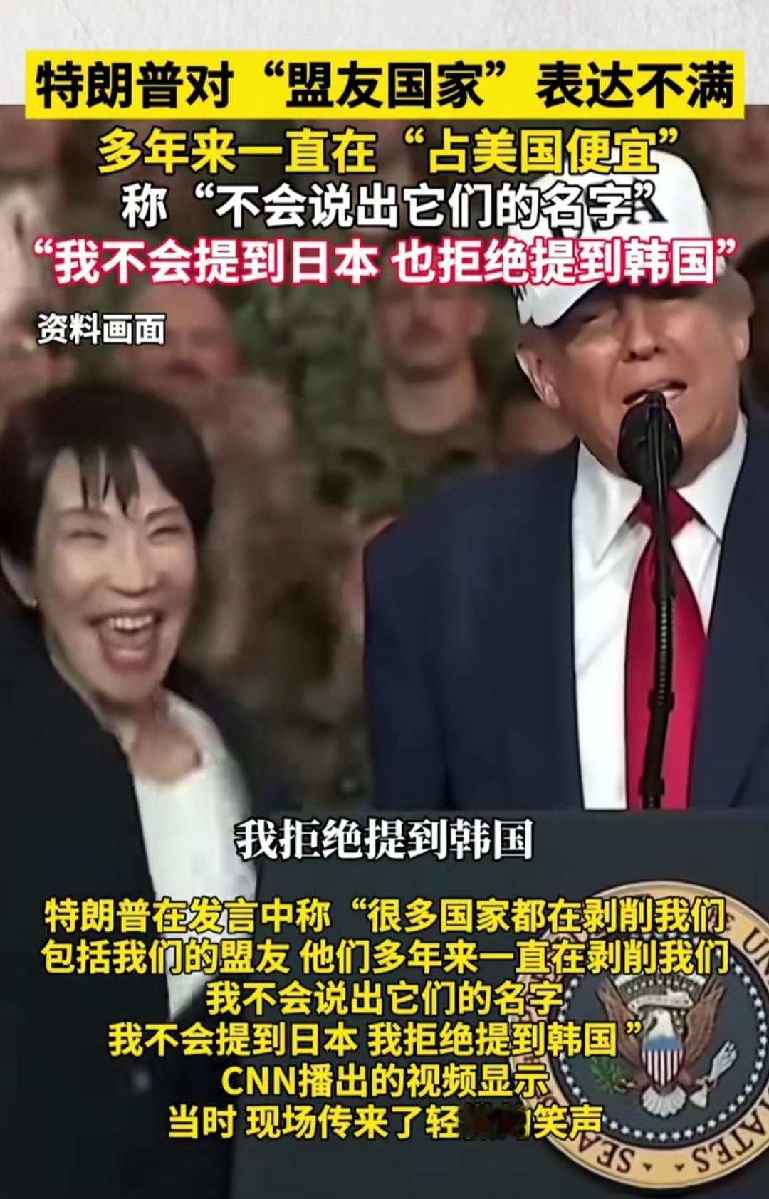 特朗普在白宫开会时的操作,看完都替日韩尴尬:说盟友“占美国便宜”,嘴硬“不说名字”,转头就点了日、韩的名,现场还传出笑声。 这哪是“不说”啊,是明着“内涵”。他一边说关税给美国赚了几十亿,一边骂盟友“剥削”,话里话外都是“美国优先”那套——盟友的情分,在利益面前不值一提。 其实这不是头一回了,他之前就逼日韩涨军费,现在不过是换了种“嘴硬心软(硬)”的说法。同盟这层关系,在他这儿更像“利益买卖”:美国给安全保护,盟友就得掏够钱、让够利,不然就当众拆台。 国与国之间哪有纯粹的“铁关系”?说到底都是利益的权衡。可这种明着戳破窗户纸的操作,也太不给盟友留体面了。