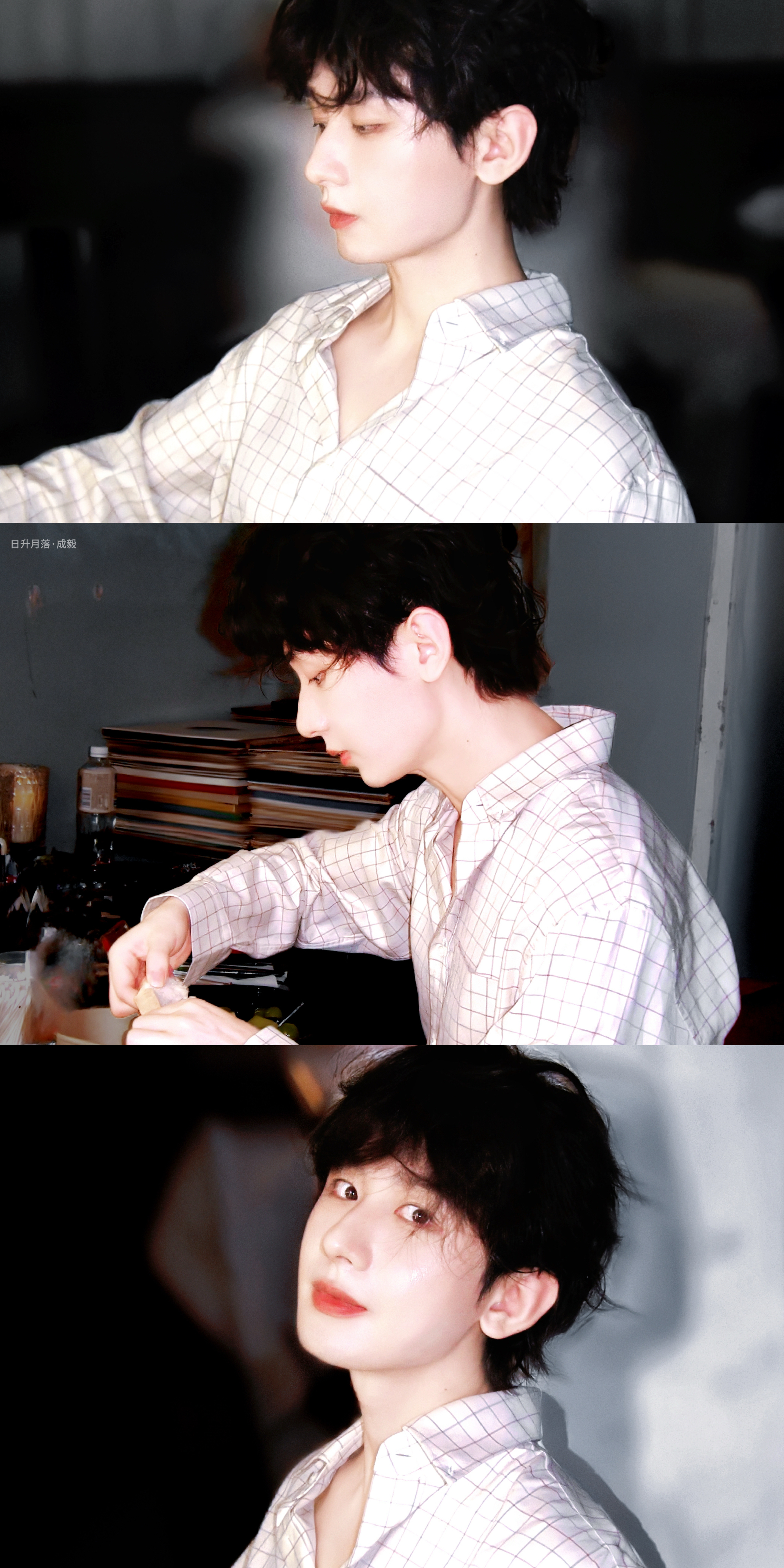 软乎乎的卷毛ee,就让光影在衣角多停几秒吧。成毅