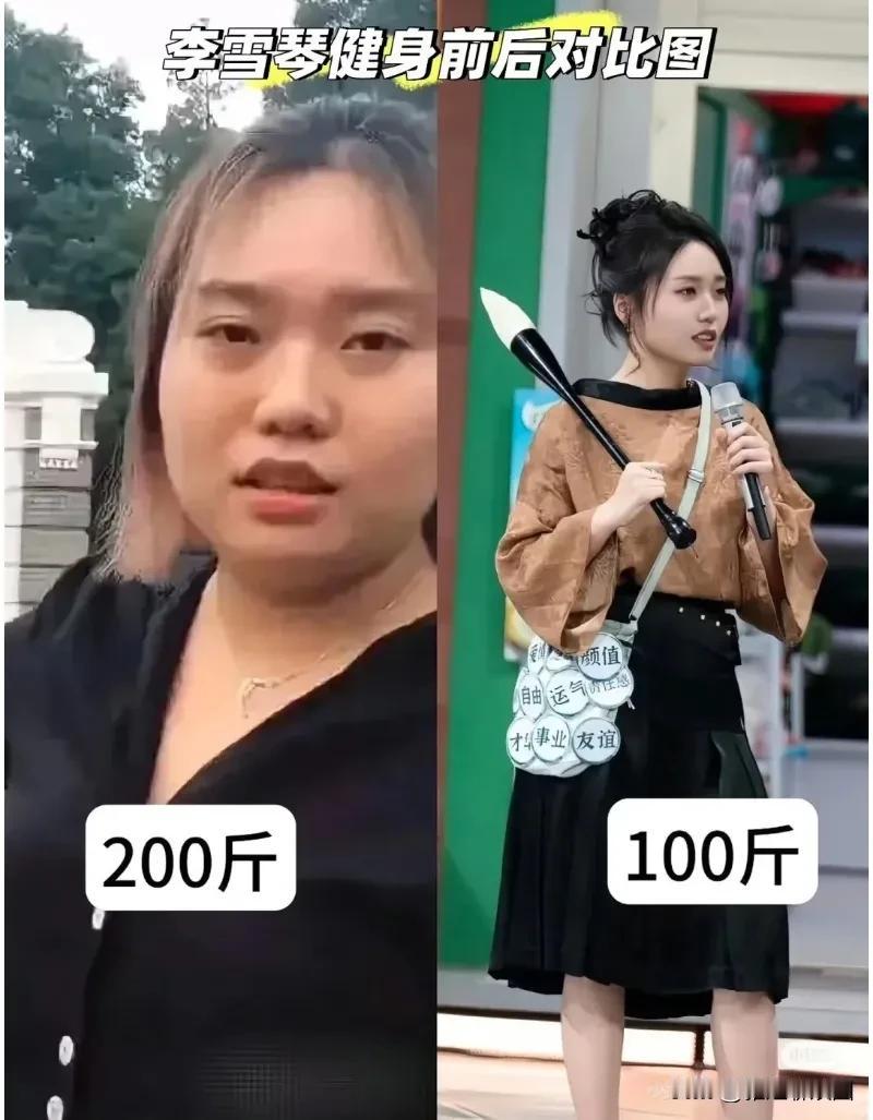李雪琴真的瘦了很多,从200多斤到现在100斤上下,真的不是一般定力能做到的。很多网友说她瘦了变漂亮了不少,其实她本来底子就很不错的,胖的时候,也很明显,五官端正,大眼睛,唇红齿白的。总觉得她瘦了就不讨喜了,走谐星路线还是胖乎乎的更有观众缘,包括贾玲也是。