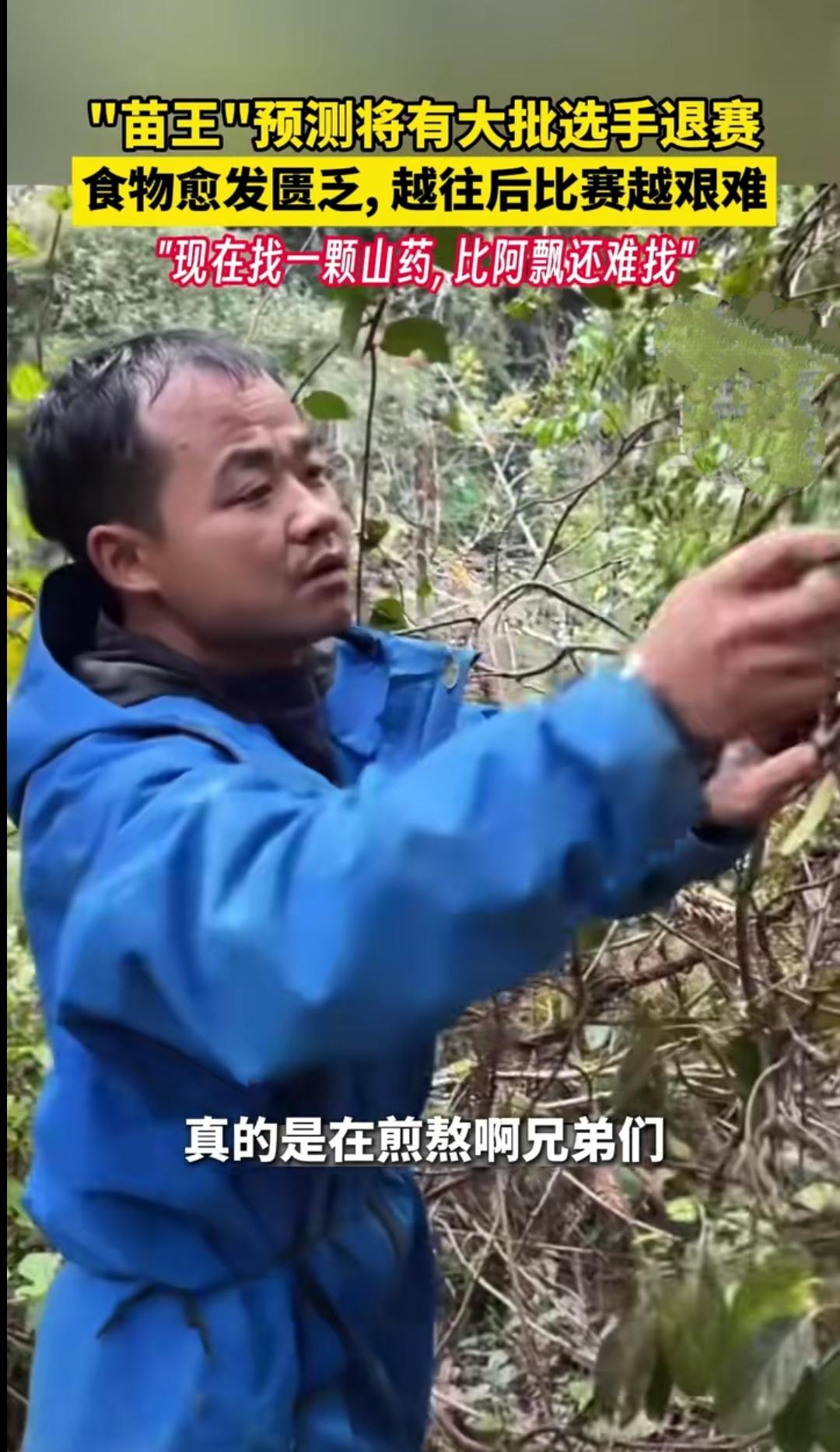 张家界荒野赛的选手们快被逼疯了!“苗王”裹着泥点的冲锋衣蹲在草棚里吐槽:“现在找颗能吃的山药,比见阿飘还难”——这话真没夸张。 镜头里,选手们把林子翻了个底朝天:有人蹲在泥坑里抠半天,只摸出块石头;有人攀着树藤找野果,连带刺的灌木都薅秃了,最后只能啃干树叶充饥。“苗王”说,比赛才到第10天,能吃的野菜、山药早被前面的人搜光了,现在想找口吃的太难了。 他自己能撑住,是因为从小在山里长大,早把能藏的物资埋在了隐蔽处;可有的选手,只能靠喝溪水填肚子。“再熬10天,肯定有大批人退赛”,“苗王”这话,是看着身边选手饿到眼发花的实话。 荒野生存哪是综艺里的轻松?是真的要跟肚子较劲,能找到吃的,才是活下去的硬本事。