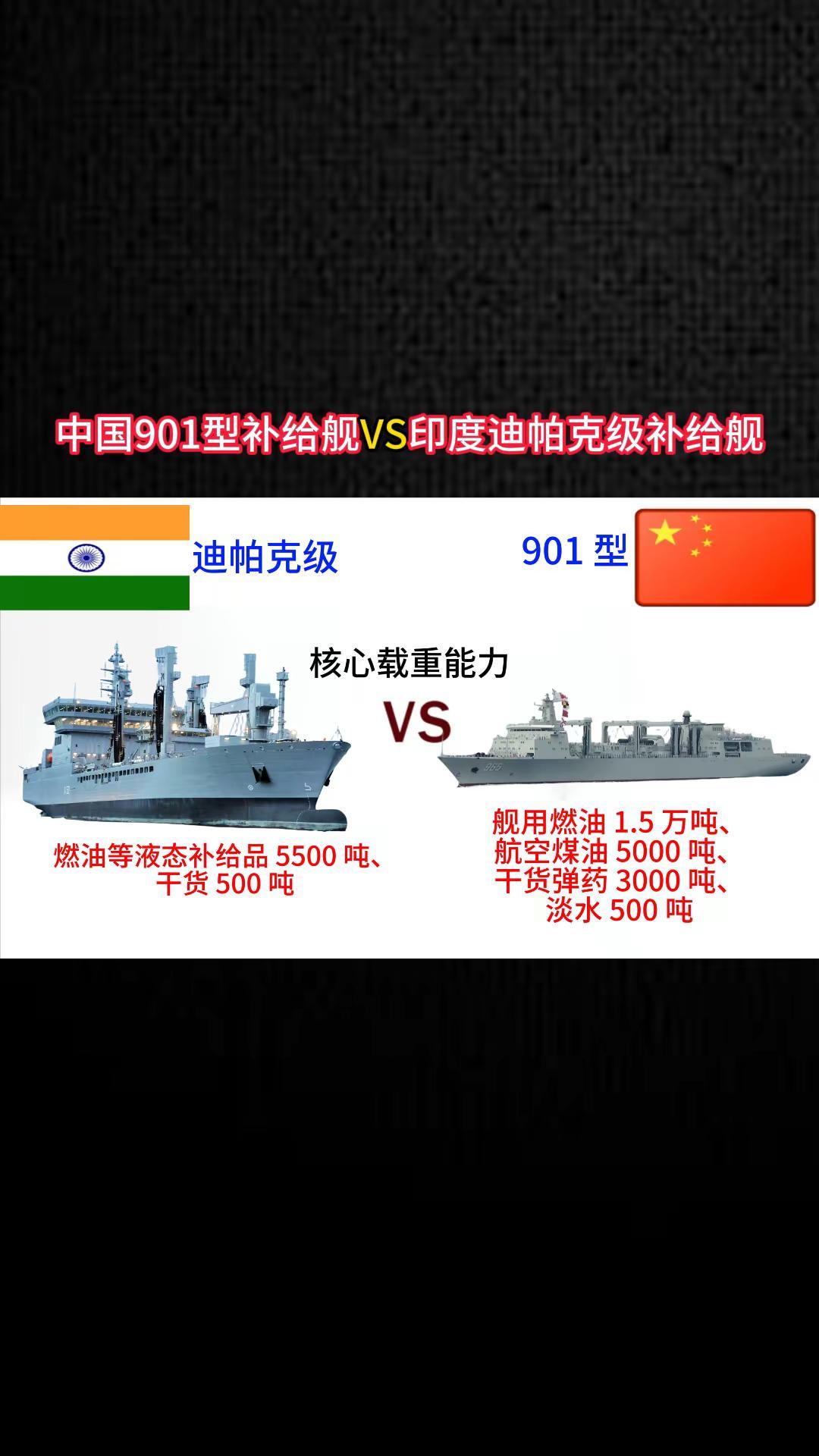 中国901型补给舰VS印度迪帕克级补给舰。军事科普 军事科技 军事爱好者 军事迷