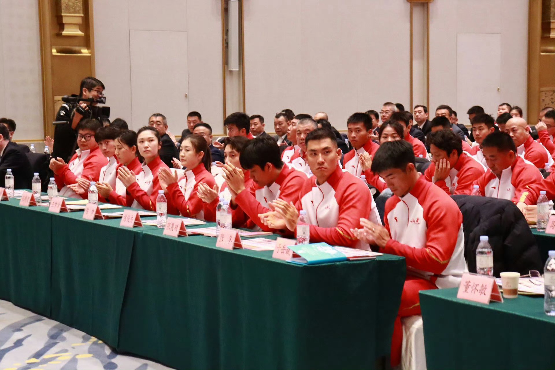 在山东省全运会表彰大会上,乒乓球女单铜牌得主、女团冠军成员陈梦位居C位,与省委书记握手接受表彰。陈梦作为东京、巴黎两届奥运会4金得主,成为奥运金牌最多的山东籍运动员。本届全运会陈梦在女团决赛中,作为队长独得两分,帮助山东队时隔12年重得金牌。在缺乏系统训练、休整11个月的情况下,夺得全运女单铜牌。