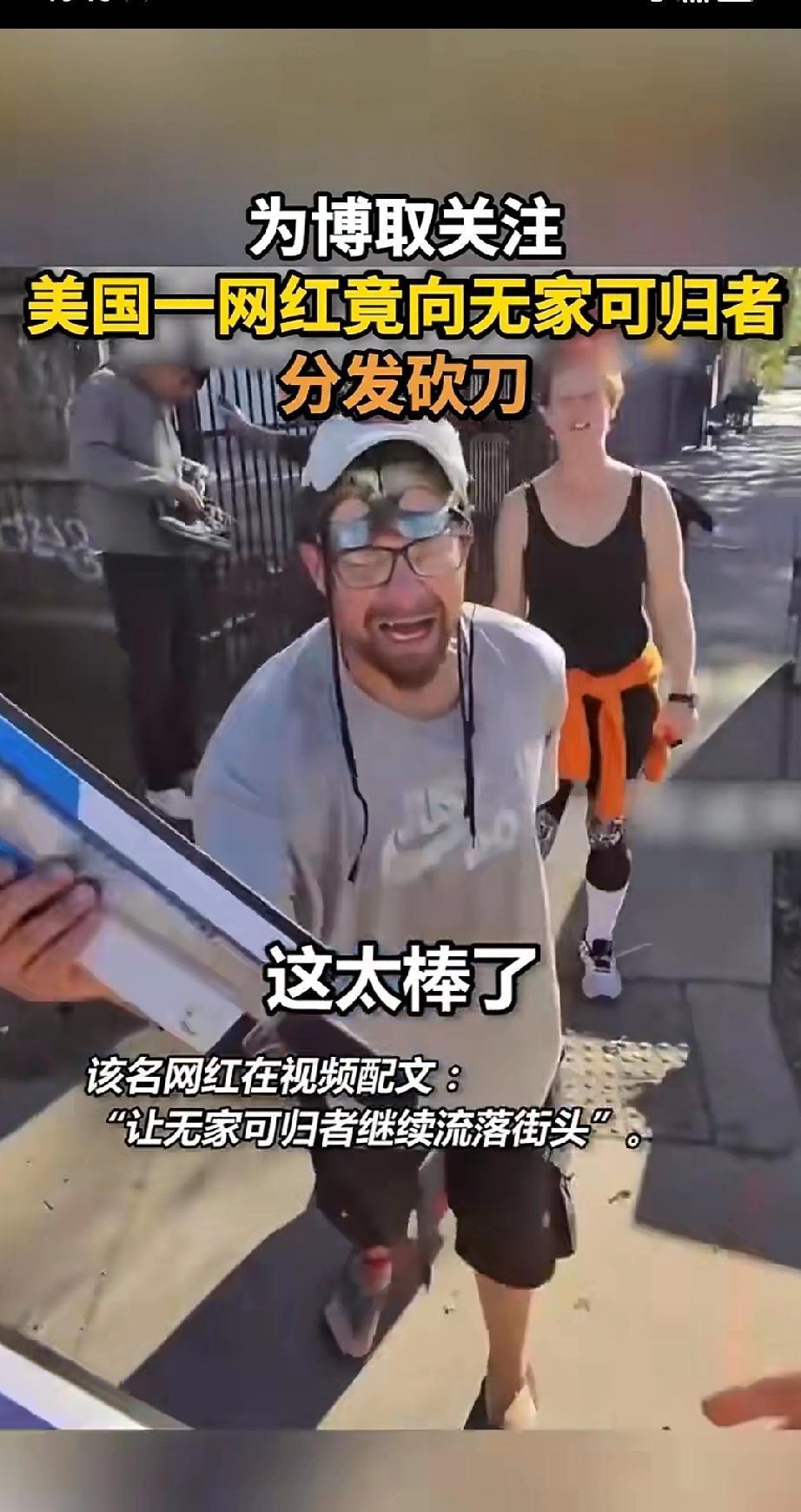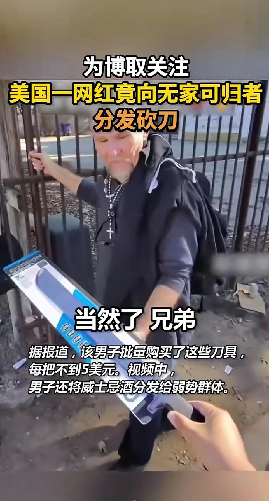[笑哭]美国惊现网红博主街头给“流浪汉”分发“大砍刀”和高度白酒。 之前公知说什么欧美多好,给人感觉,哪怕是国外的月亮🌙都比中国圆。 空气也是甜的。 现在想想,多么讽刺啊,欧美满大街的流浪汉,酒鬼,瘾君子,零元购,合法入侵者等等。 国外的博主,拿笔记本电脑,扔在商场无人看管的地方一段时间,只有在中国没人敢拿。 美国见闻 美国 欧美