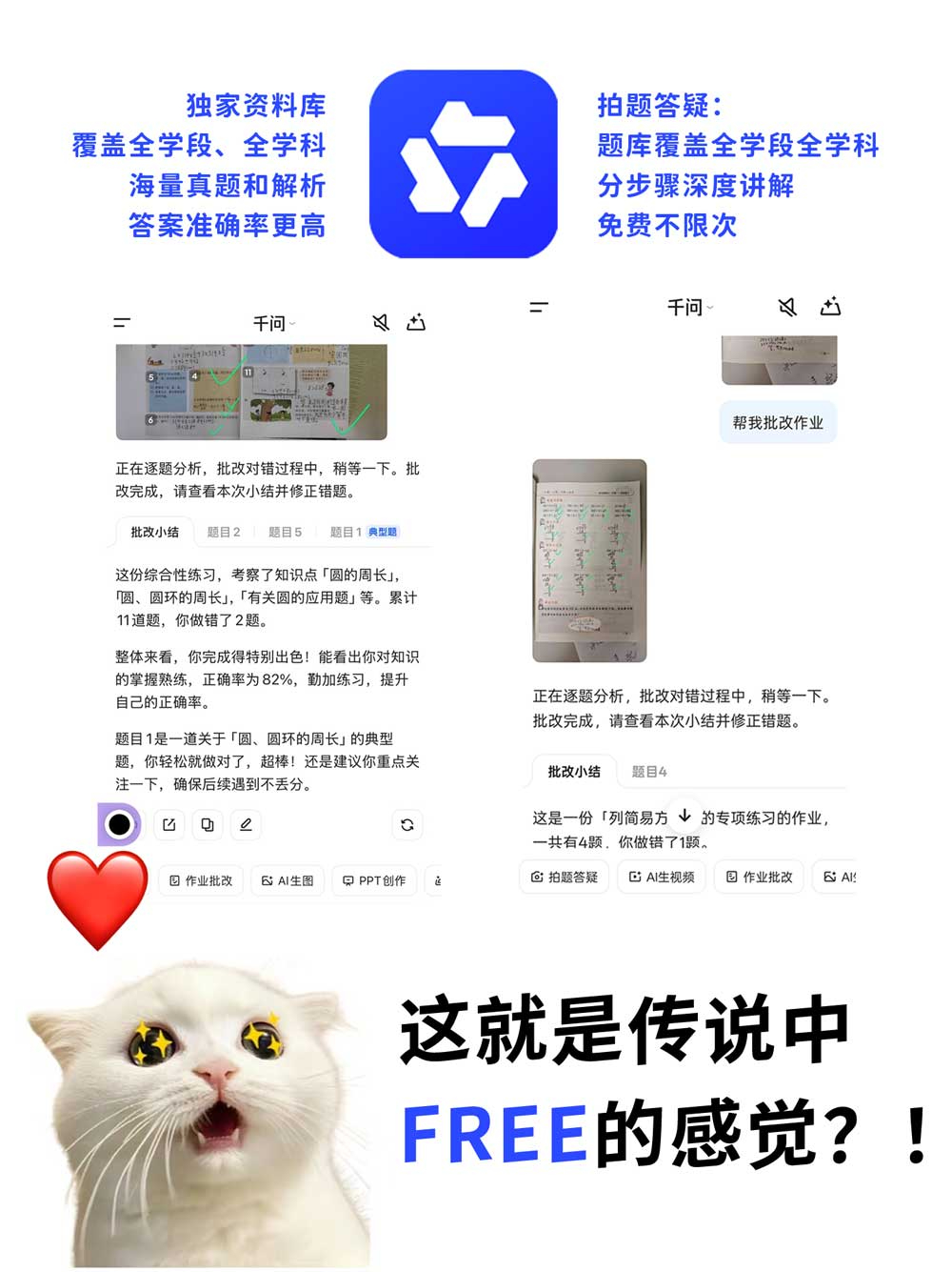 博主实测千问是初中数学辅导天花板 哪个大学生没被数学题支配过啊!亲戚家小孩动不动就甩一道题过来,小学题还能应付,一上初中真的分分钟被难住。我常常一边硬着头皮想,一边找借口:“我在忙,写得慢一点哈…”(内心:这题到底从哪下手啊!) 直到最近刷到不少测评,我也试了试千问——好家伙,真香了。 上次表妹问我一道数学题,我卡了快二十分钟。用千问一拍,它竟然从怎么读题开始教:先圈关键词、画示意图,再引导分情况讨论,每一步都配上思维提示。我还试了试,如果整页作业拍完,它不只判断对错,还会分析错误类型,比如“计算粗心”“公式记混”,最后生成一份专属薄弱点报告,这比老师还贴心啊。 对比用过的一些工具,千问真的更胜一筹。它清楚学生容易卡在哪里,也知道怎么讲才能让人真正听懂。现在我表妹遇到难题,会先自己用千问学一遍,我再帮她巩固——效率高了,亲情也保住了。