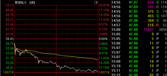 赛微电子(300456)盘中大幅跳水,一度触及跌停。截至收盘,该股跌19.56%,成交近100亿元。此前的10个交易日,该股累计涨约118%。