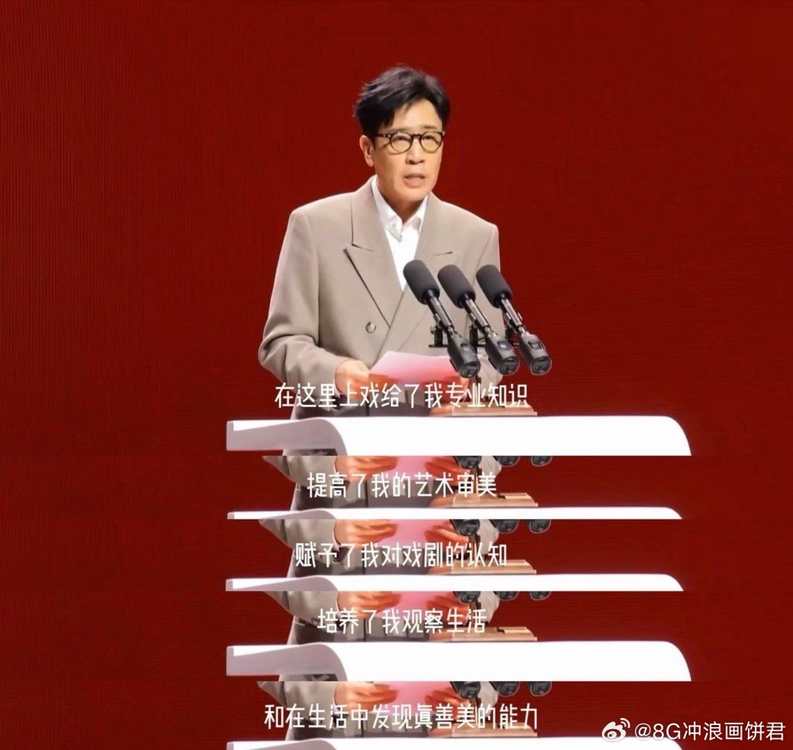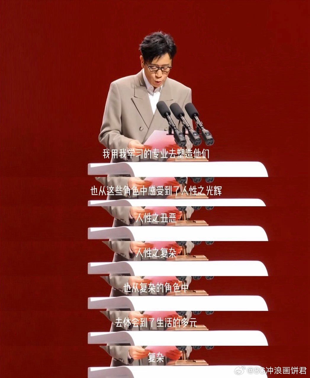 于和伟 塑造人物是演员的天职 上戏80周年这席发言,于和伟掏出了演员的真心。迷茫时被老师一句话点醒,三十年来他揣着这句话扎进每个角色:曹操的霸气、陈独秀的激扬、吴石的隐痛…他说自己只是上戏毕业生,却把“演员”二字诠释得滚烫而庄严。