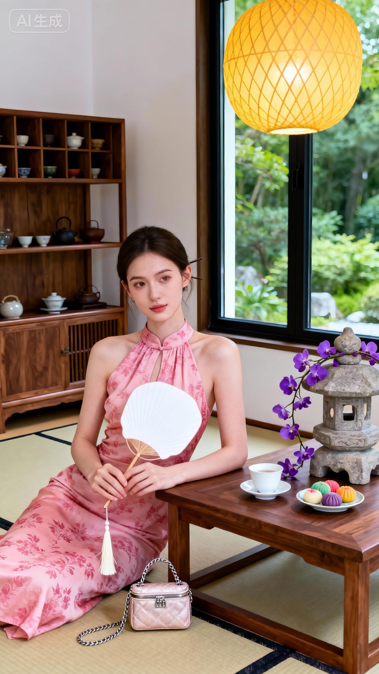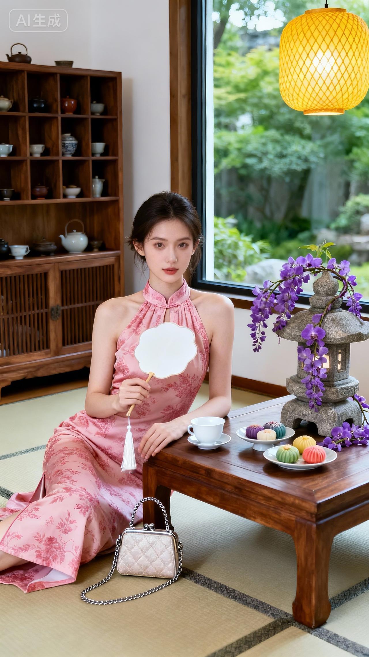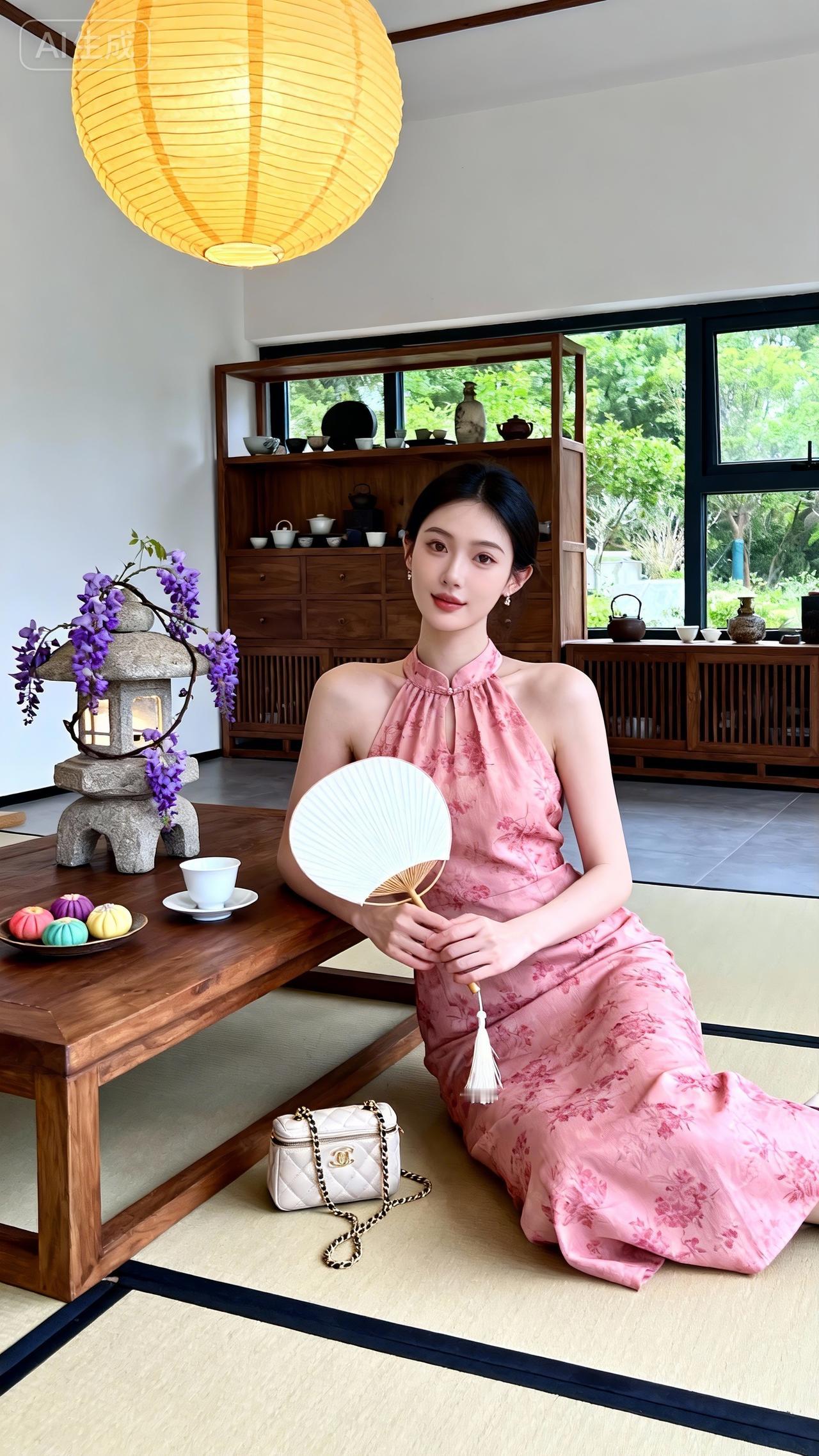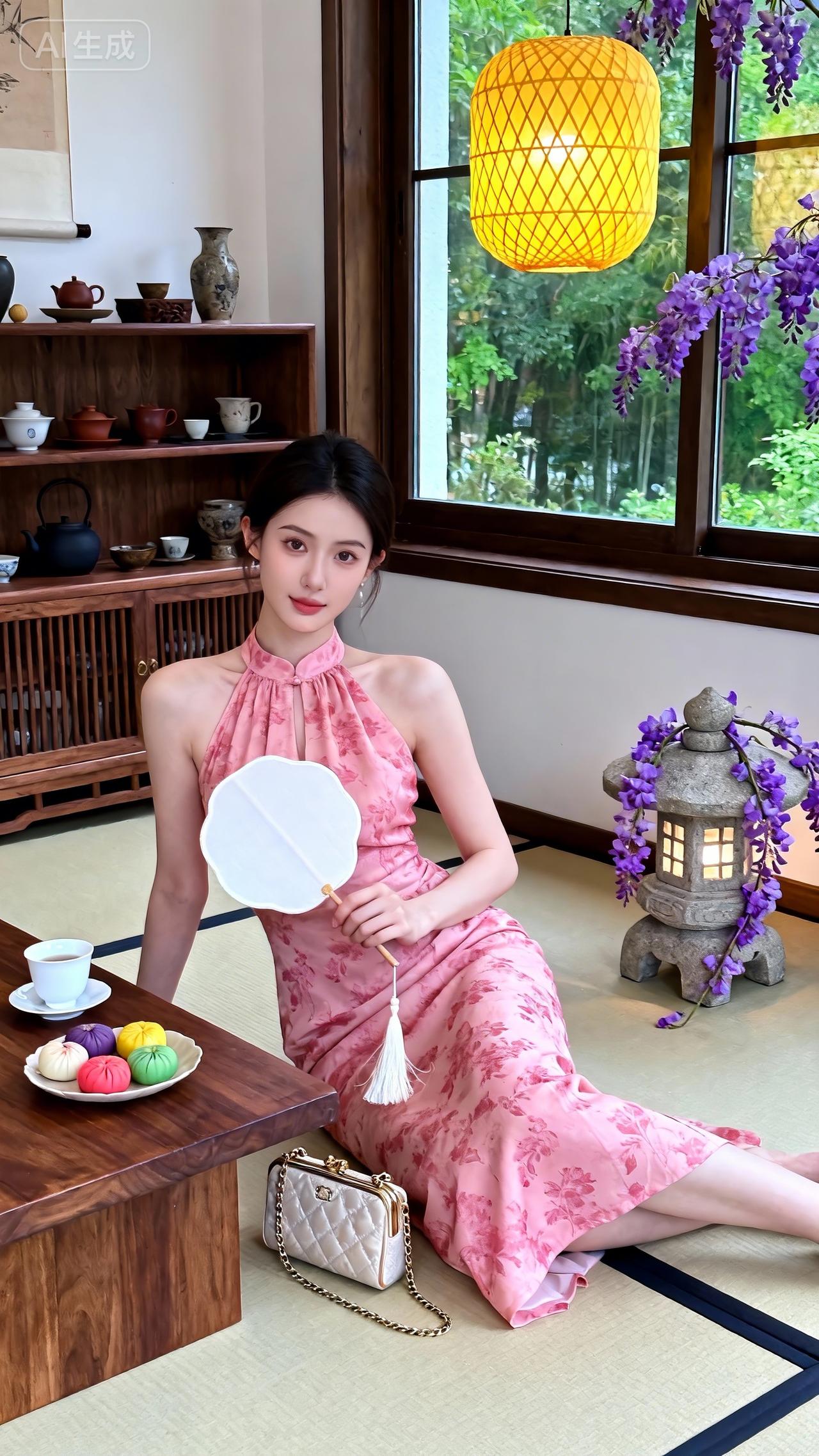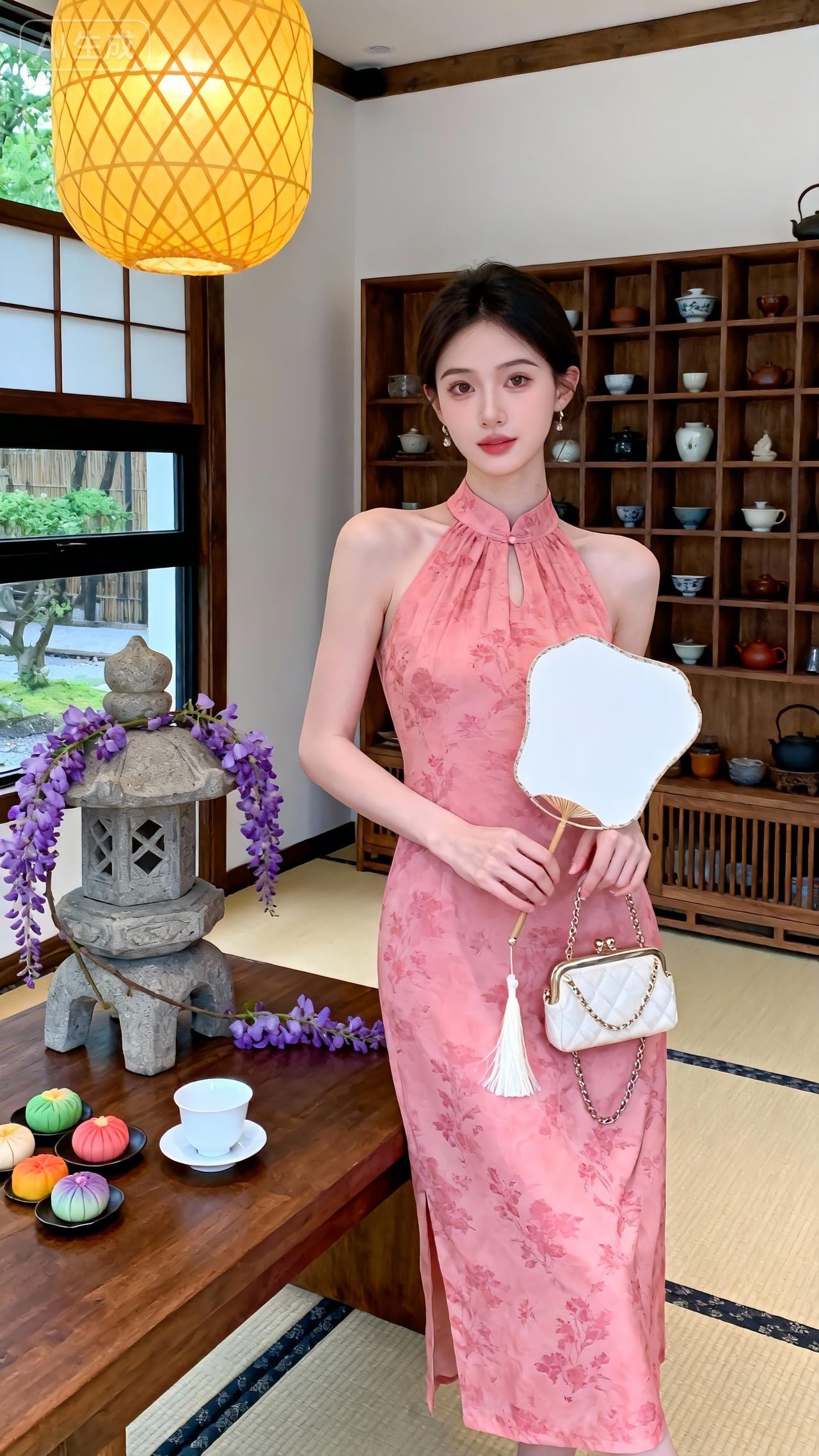 粉调国风挂脖裙,温婉氛围感拉满水墨风吊带裙 紫色中式连衣裙 中式挂脖裙