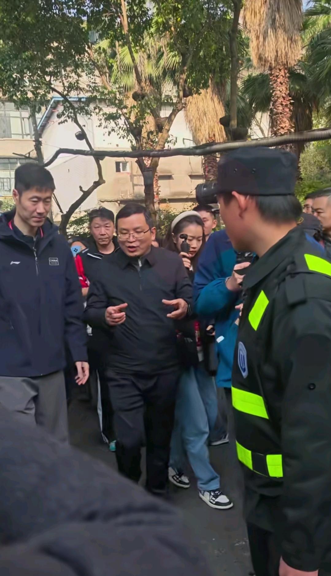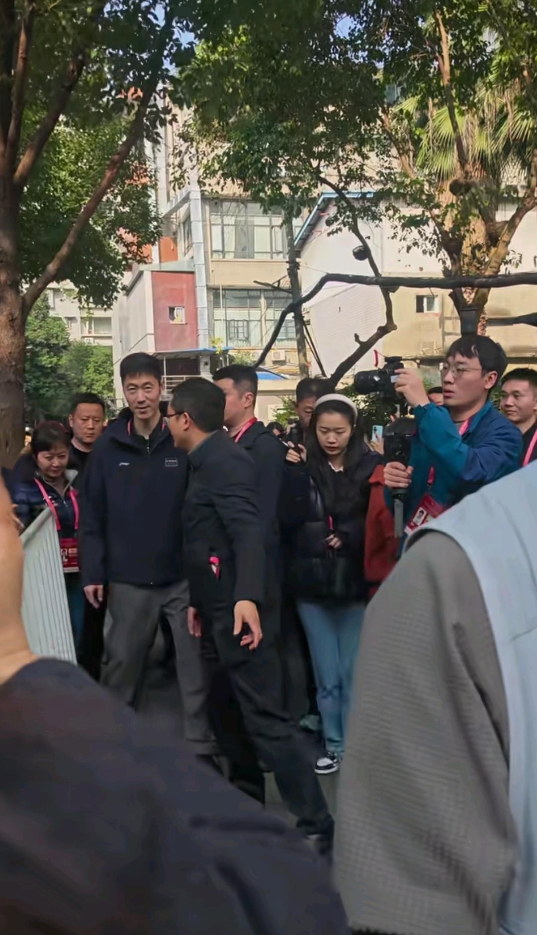 12月2日,王励勤现身四川成都体育馆,场馆门口挤满了人群,大家都想看看王励勤。 王励勤在安全人员的陪同下,穿过狭窄的通道才好不容易通过围栏进入,成都人太热情了,王励勤看起来很平和,耐心跟随工作人员进入工作区。 王励勤个子高,很显眼,穿着黑色运动上衣,灰色裤子和黑色运动员,虽然已经成为领导了,但依然保持着穿运动服的习惯。