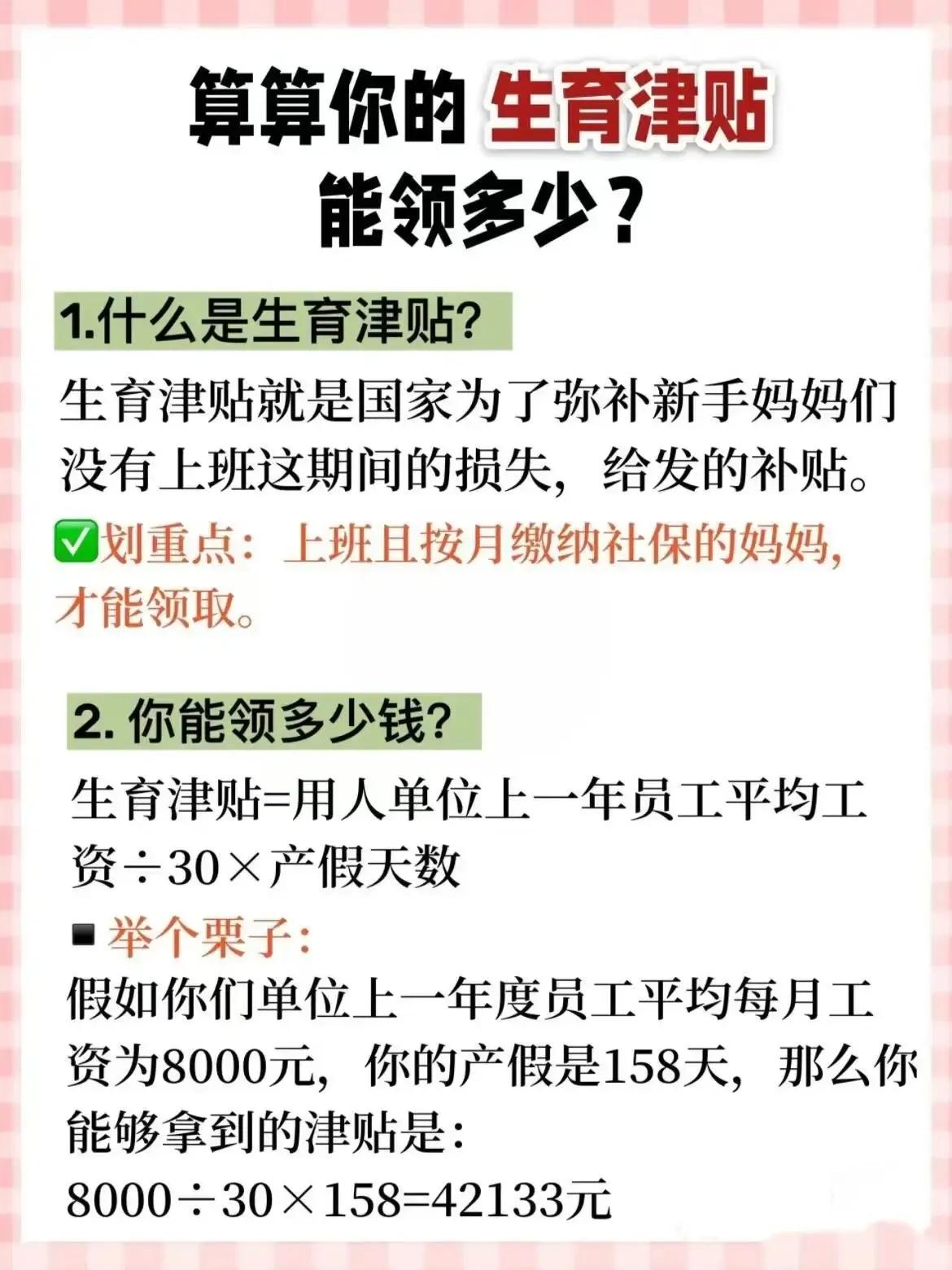 好消息!国家医保局最新通知,生育津贴现在大多能直接打到个人银行卡里了,不用再经过单位转手,保障更到位~ 截至12月1日,全国27个省份(包括新疆生产建设兵团)已经全面实现这一政策,湖南、广东是刚加入的“新成员”。从地市一级来看,超过90%的地区都能直接领,覆盖范围超广。目前还没全面落实的是北京、天津、广西、贵州和新疆(不含建设兵团),不过这些省份里也有部分城市已经落地,不是完全不能领。 这个政策对参保职工太实用了!申领条件很简单:在职期间按规定缴够生育保险(一般是9或12个月,看当地要求)就行。津贴金额是按单位上年度平均工资和产假天数算的,公式大概是“单位月均缴费工资÷30×产假天数”,工资越高、产假越长,领的钱越多。 申请也方便,能去医保窗口办,也能在政务网、国家医保服务平台APP上线上申请。记得提前准备好准生证、出生证明、出院小结、身份证和银行卡信息,具体材料可以先问下当地医保部门。 生育补贴政策 生育补贴 生育津贴计算 生育奖励补贴 生育津贴工资 生育津贴对比 生育津贴差额