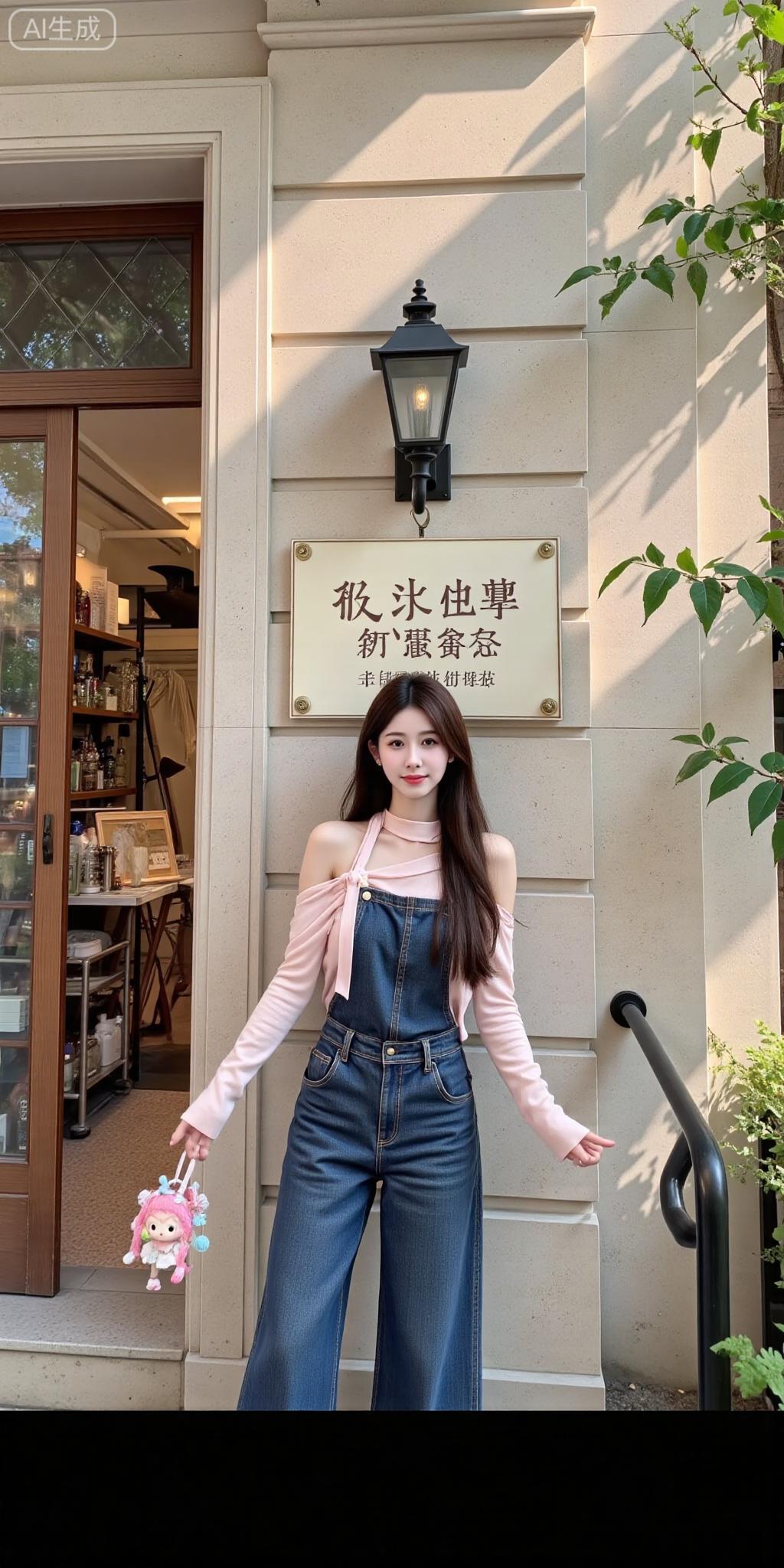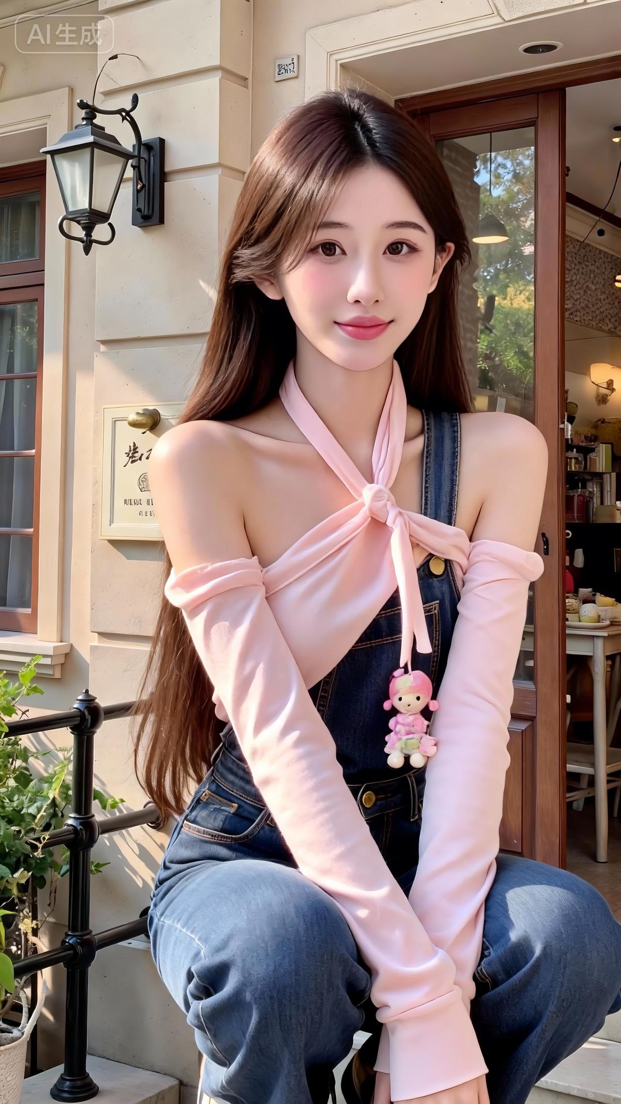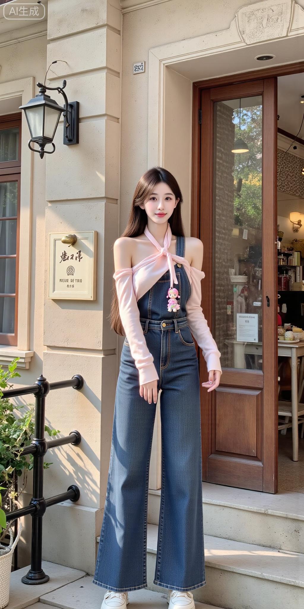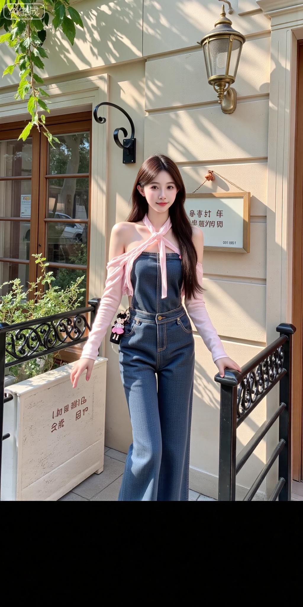 粉纱挂脖+牛仔背带,甜酷混搭感拉满背带裤吊带搭配 紫色牛仔背带裙 牛仔连体背带裙 少女感背带裙
