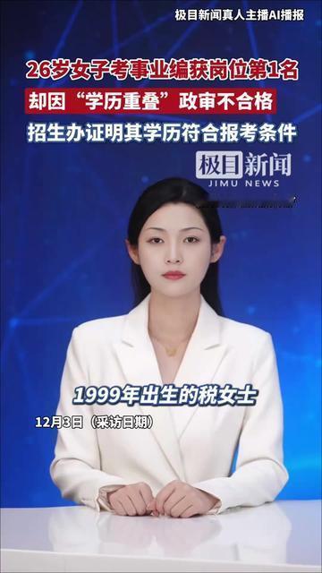 凌晨三点的错题本,终究没敌过学历重叠四个字。 26岁的她,凌晨三点台灯下的错题本翻得起毛,面试前对着镜子练了50遍微笑,查成绩时手发抖截的屏还在相册里,终于拼到事业编岗位第1名。 可政审突然说学历重叠不合格,之前报名时招生办明明说她学历符合条件啊? 就是自考和全日制同时读了,很多人都没当回事的情况。 我们不怕考不上,怕的是前一步说行,最后一步说不行,熬的夜、刷的题、攒了半年的劲,全栽在规则打架里。 是政审标准比报名严?还是招生办当初确认错了? 考编的意义,不就是图个努力能被看见的确定性吗? 你遇过这种努力被规则卡脖子的事吗?该找谁要说法?