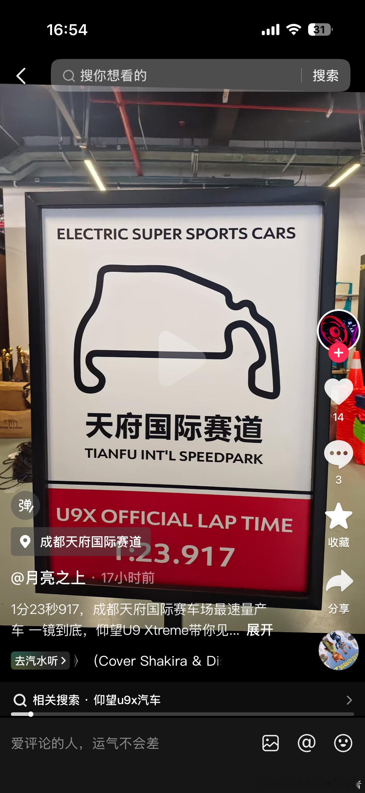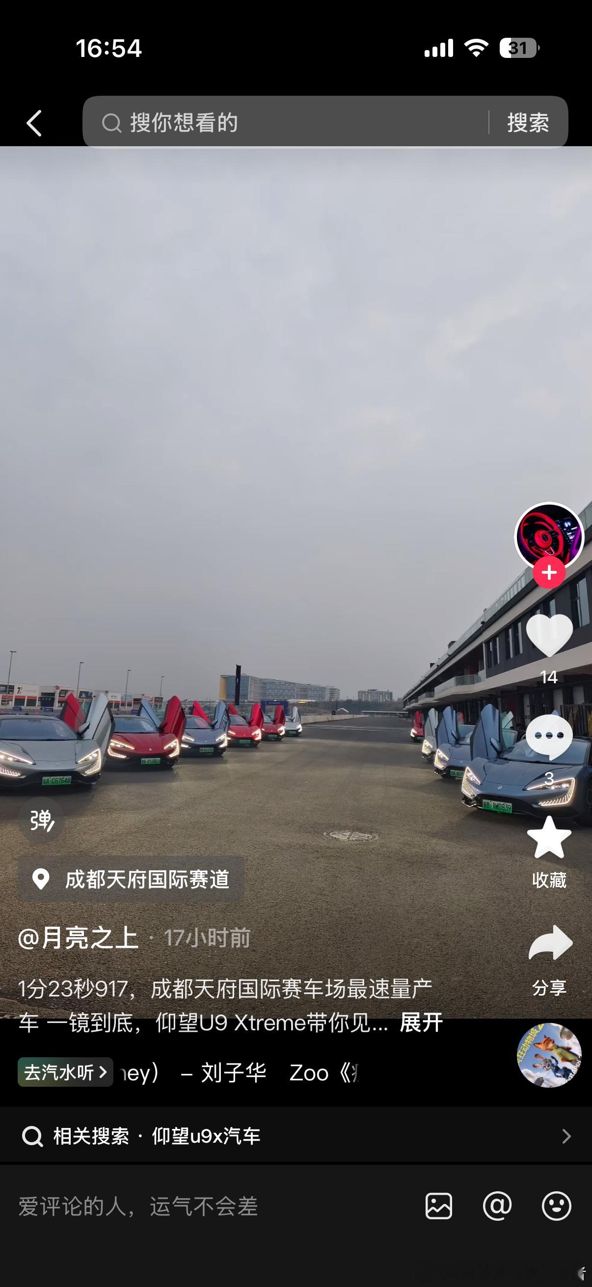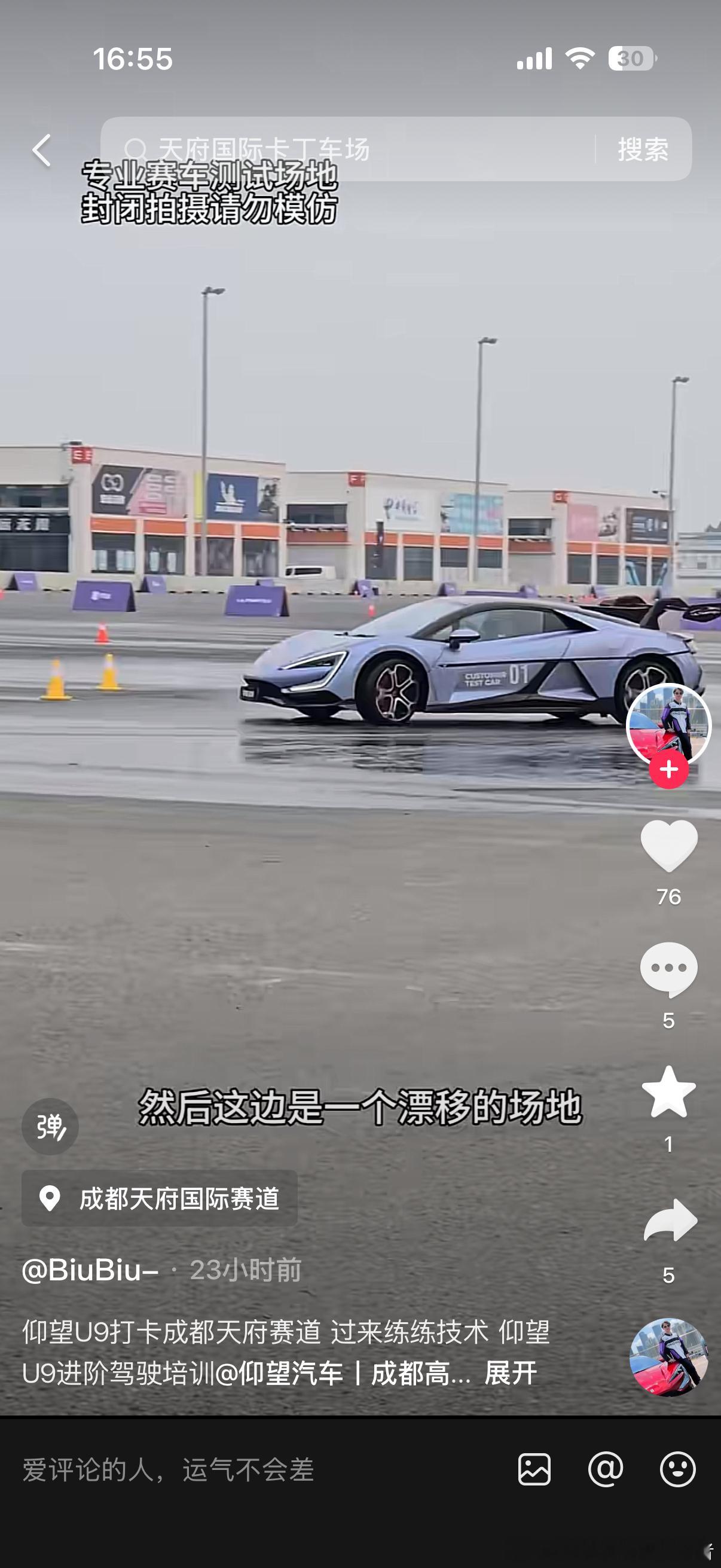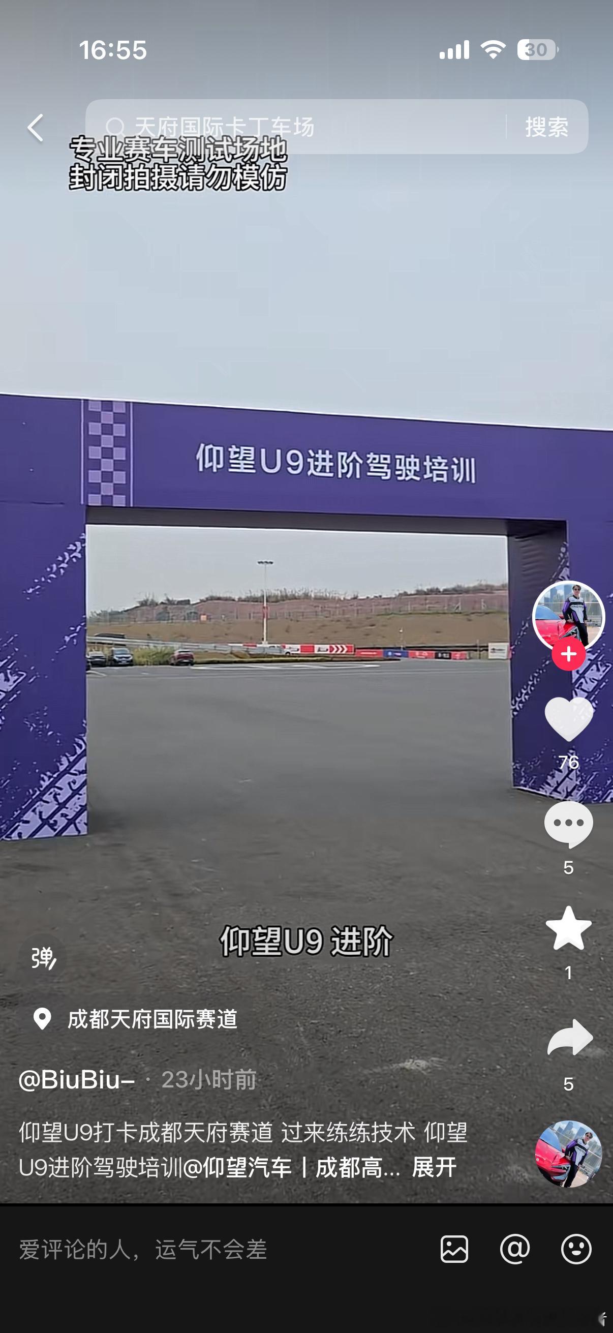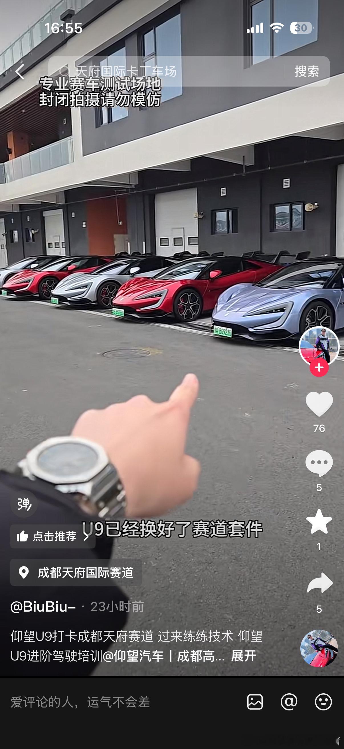 前方最新消息!仰望团队在天府赛道包场了,进行仰望U9进阶驾驶培训。现场有很多辆仰望U9,已经换好了赛道套件,准备开始下赛道跑圈。然后还有漂移项目,以及创造天府赛道最速量产车记录的3000匹马力的仰望U9X也去到了现场。有了刷圈经验,仰望U9也会得到进化。切记!如果大家要下赛道,那就更换赛道套件,原厂状态并不合适。这次专门是培训的,不知道都是谁去下赛道了。