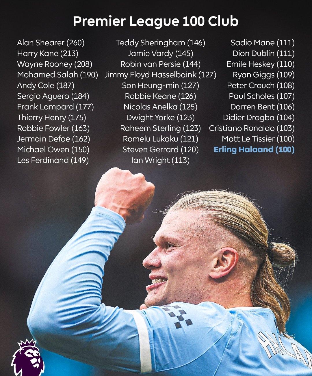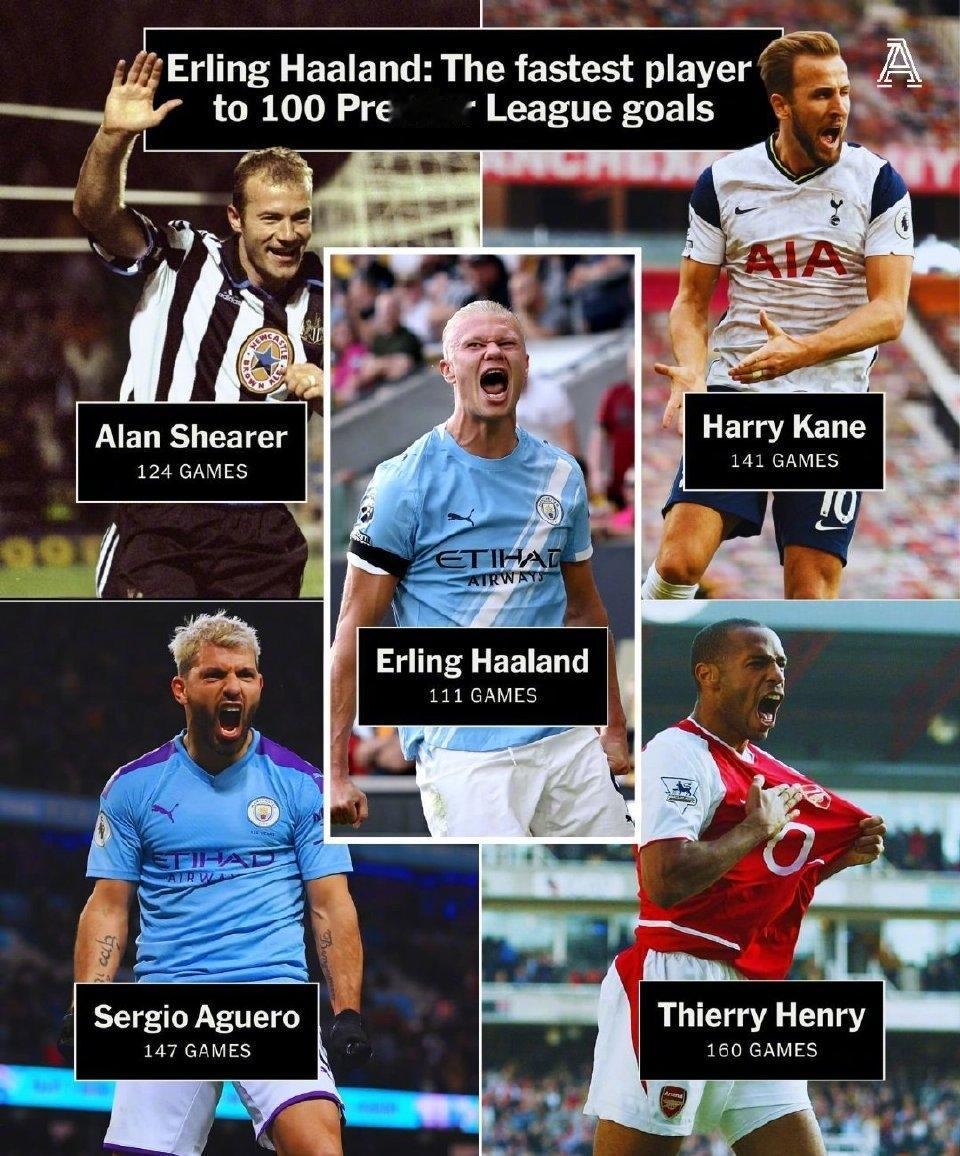 绿茵资讯! ★最快速度! 哈兰德111场英超打入百球,这是英超最快百球纪录,此前