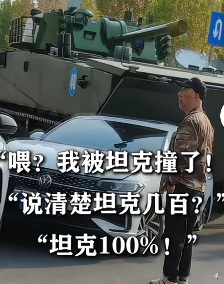 这个小车司机,够倒霉的!一不小心,竟然和军用坦克相撞了!他赶紧给保险公司打电话,“保险公司吗?我被坦克撞了……” “说清楚点,坦克几百?” “坦克百分百!”此时,客服人员还没意识到,问题的严重性,等工作人员到达现场后就傻眼了! “这明年的保险费,该如何提高啊!”交警来到现场后,“小车掉头,妨碍直行车辆,全责!” 此时,小车司机站在风中凌乱了! 我的车,被撞的三厢变成两厢了!而那个威风凛凛的大家伙,却只掉了几两灰,这太可怕了!但自己是全责,也只能认倒霉了! 所以,司机师傅们你开车掉头,或转弯时一定要做好瞭望,确保安全后在前行!毕竟,“安全第一”是幸福的首位,对吗?
