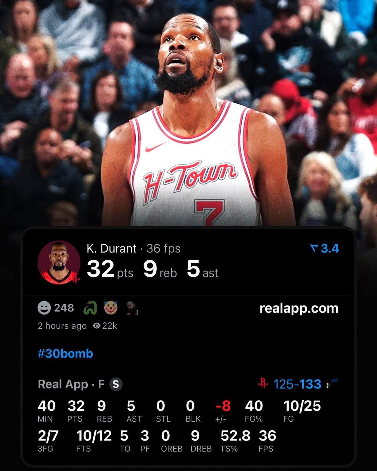 感觉杜兰特今天有点上头了! 赛后只看数据的话,全场25投10中,其中三分球7投2中,得到32分9篮板5助攻,表现好像还不错,但看了比赛就知道,今天杜兰特拉了,上半场简直就是在梦游,虽然第四节调整回来了,但杜兰特终究是老了,已经不是从前那个无所不能的他了…… 其实最后火箭还是有机会赢球的,如果不是最后追分的时候申京去扔三分,阿门失误…… 数据有时候真会骗人。杜兰特这场球的命中率刚过四成,三分线外更是手感冰凉。上半场他多次强投打铁,防守端也显得脚步沉重,完全跟不上对手的节奏。这种表现和两天前他复出对阵爵士时的高效判若两人——那场比赛他14投10中,三节就轻松拿下25分,正负值高达+26。 年龄不饶人,杜兰特已经37岁了。本赛季他场均出场时间维持在32分钟左右,但背靠背比赛时效率明显下滑。本场之前他刚经历连续客场作战,体能储备不足直接影响了发挥。虽然第四节他独得12分试图挽回局面,但关键球的处理上还是暴露了疲态。 火箭这场输得实在可惜。最后两分钟球队只落后3分,但申京在进攻时间充足的情况下选择仓促三分出手,阿门·汤普森随后又出现传球失误,彻底葬送翻盘希望。整场比赛火箭篮板球输了8个,二次进攻得分比对手少10分,这些细节的缺失才是失利的主因。 杜兰特的里程碑之夜刚过去两天,生涯总进球数升至历史第11位。但英雄也有迟暮时,如何科学分配老将的出场时间,将是火箭教练组面临的重要课题。目前球队以15胜8负排名西部第三,要想在季后赛走得更远,必须解决好关键球的执行力问题。 各位读者你们怎么看?欢迎在评论区讨论。