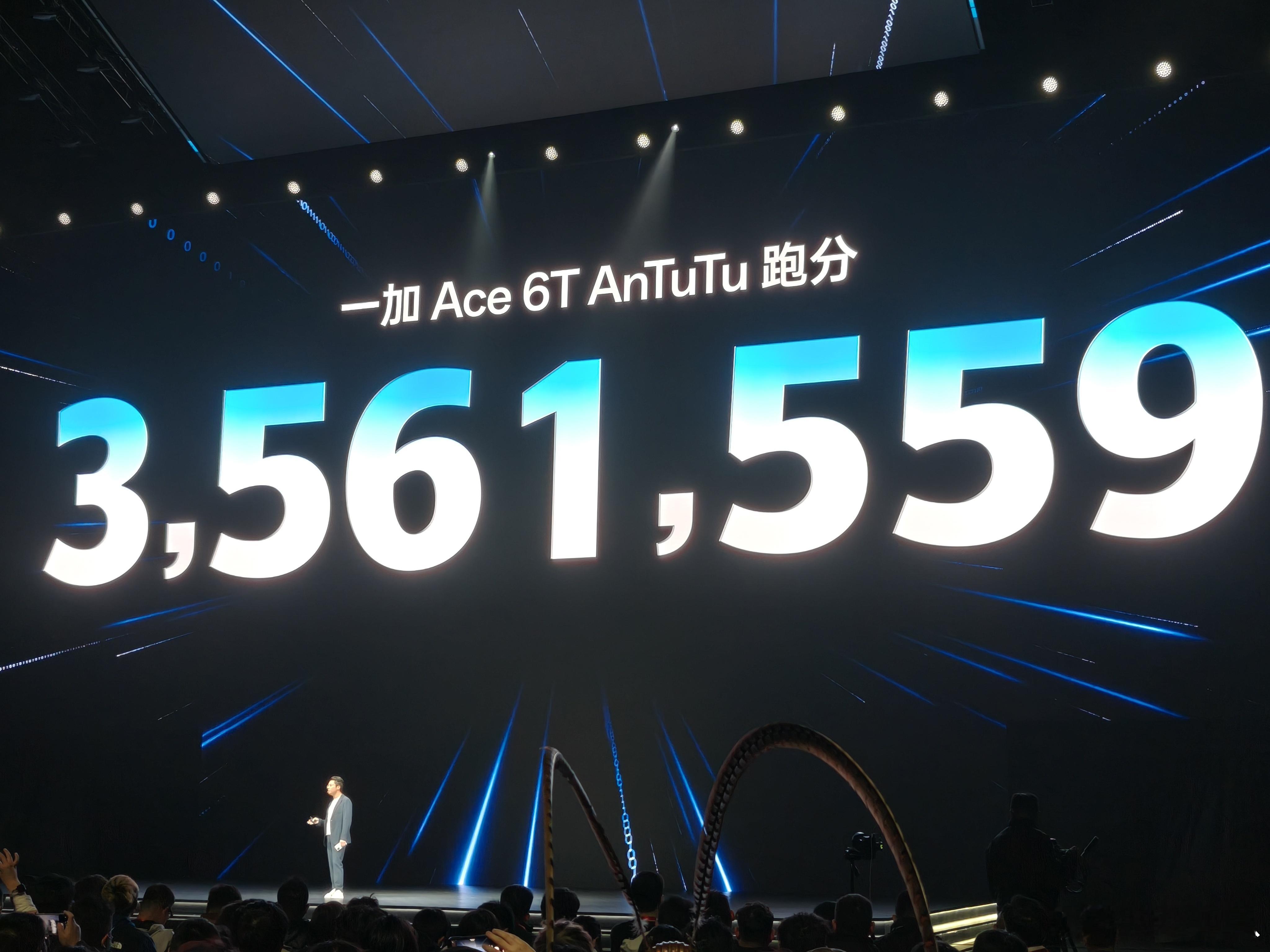 一加Ace6T 全球首发第五代骁龙8处理器,安兔兔跑分高达350万,性能仅次于第五代骁龙8至尊版。